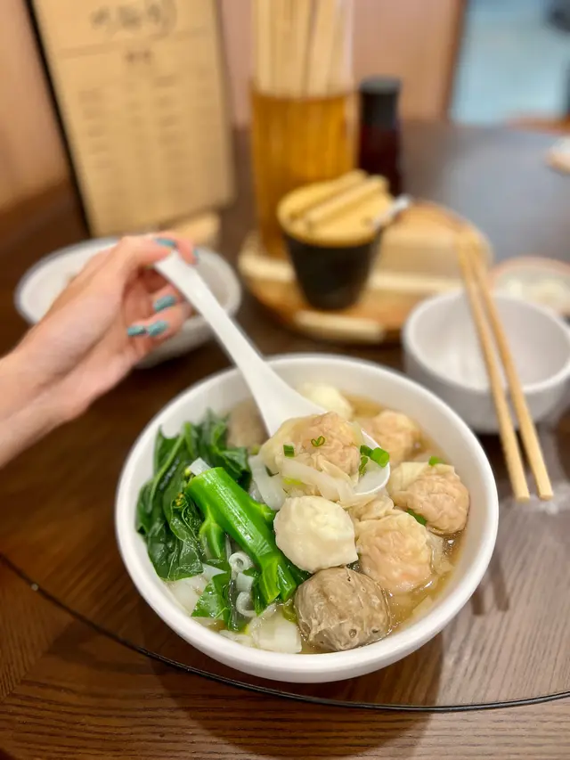 喺附近開完OT收工,其實都夜了。依家疫情好多舖都好早就收咗😮‍💨夜晚搵食好艱難。心諗總之行到一間有開都衝入去!比我見到呢間粉麵,而且裝修係我最愛嘅木色,即刻就衝入去😆入到去好多野都好精緻,就連個筷子都係特制,有佢地名嘅木筷子。話說我真係好肚餓😵‍💫就叫咗個花菇牛筋麵+淨雲吞。花菇真係好大粒🍄而且炆得入味又好淋,真係一定要食!牛筋🐂就啱啱好,唔太硬唔太淋,中中間易入口,都very good good👍🏼👍🏼雲吞size中等,但入面真係足蝦🦐連湯食落清清地好舒服。總括嚟講:今晚搵到好野食,食飽好滿足,以解我一日嘅疲勞😘查看更多