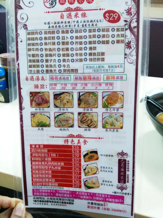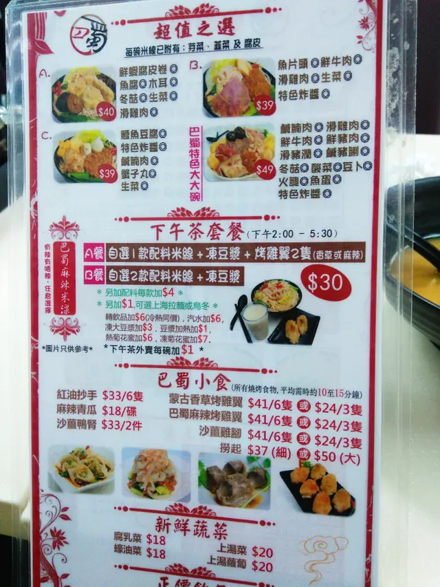 腩肉仍是半肥瘦,不怕肥肉過多,略帶鹹香,不會太鹹。清湯味不太濃,因巴蜀的辣我感到很嗆。倒不如叫