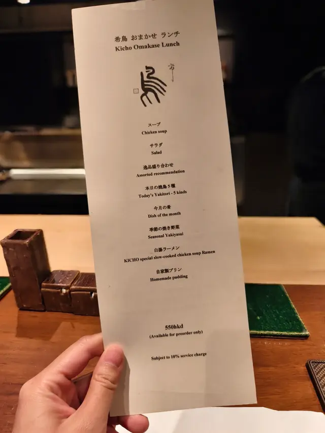 剛榮獲2025年米芝蓮推介的「希鳥 Kicho」是來自東京鳥割烹專家,從鹿兒島的合作農場直接引入當地的著名鬥雞品種黑薩摩雞,此品種雞隻的油脂分佈均勻雞味濃郁,口感結實又不失柔嫰由日籍主廚主理,餐廳以吧枱設計圍住炭火燒爐,能近距離欣賞師傅主理燒鳥串燒,體驗正宗日式鳥割烹文化,今日和朋友前來品嚐午市Omakase 套餐,體驗最高水準的炭火燒鳥料理⭐️希鳥おまかせ ランチKicho Omakase Lunch $ 550 + 10%套餐非常豐盛,包括雞湯、沙律、一品料理、五款燒鳥、是日廚師精選、季節野菜、雞白湯拉麵和甜品,午市來說價錢實在性價比高✨雞白湯|經過多個小時的熬製,雞湯充滿骨膠原,入口膠質滿滿,鮮味滿瀉✨雞肉沙律|新鮮沙律菜,配上嫩滑雞胸肉和用雞湯煮成的啫喱,非常開胃✨一品料理四款師傅精心炮製的小點,滿滿日式家庭風味,味道口感,各有千秋🫰雞大髀肉牛蒡配燒汁,日本西洋菜柚子醋漬雞皮、酒盜甜蝦六款串燒都是用上雞的不同部位,席前睇住師傅每一款到即燒,保證送到你面前係完全新鮮熱辣辣,而且火候掌握得好好,每一款都是外層焦香,肉質多汁嫩滑 ,雞味道非常濃郁,水準高德無可挑剔✨雞皮包雞胸肉配日本青椒✨雞心 ✨雞心管 ✨雞頸肉✨雞鎚✨手打雞肉棒配日本蛋黃、燒汁✨迷你卷心菜✨慢煮雞肉雞白湯拉麵最精彩的拉麵,雞白湯經過多個小時的熬製,入口充滿膠質,慢煮雞肉口感軟腍,配上彈牙得來帶點煙靭嘅拉麵,非常美味✨自家製雞蛋布甸布甸入口就是濃郁的蛋香,口感又滑細緻,配上蜜餞黑豆入口即化,非常完美…查看更多