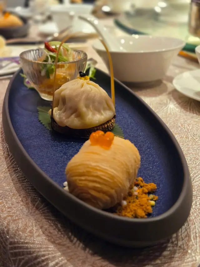 秋風送爽的日子來臨了!正是代表秋冬美食推出的好時候,當中大閘蟹是我非常期待的秋冬美食,這天終於要迎來金秋第一蟹。這夜來到帝京酒店內的帝京軒!品嚐剛推出期間限定的「金秋.蟹悅宴」。大閘蟹寒涼搭暖胃的紹興酒是絕配!我們選了這枝越洲家釀十年白瓷瓶!酒質醇厚甘鮮回味悠長,酒味則醇厚兼芬芳馥郁,加入了酸甜的話梅風味更加絕美。八道菜的蟹宴由頭盤藝粹揭開序幕!內裏包括有醬香大麴溏心鮑、生拆蟹粉小籠包及蟹油元貝千絲酥。醬香大麴溏心鮑!吃前先噴上陣陣酒香充滿儀式感,以醬油及大麴酒來冰鎮鮑魚,吃下口感香軟帶有酒香非常迷人。生拆蟹粉小籠包!小籠包夾起沒有穿破外皮合格,內裏的肉球鬆化還有甘香的生拆蟹粉,一口咬下肉汁豐盈鮮味滿分。蟹油元貝千絲酥!鮮甜的元貝粒混上邪惡的蟹油變得份外誘人,配搭外層酥香不油膩的酥皮口感非常豐富。鮮姬松茸蟹皇虎蝦球!虎蝦球非常彈牙爽口而且充滿鮮味,有蟹粉作後盾帶來濃濃的鮮香味,別忘掉畫龍點睛的鮮姬松茸那份菌香令到鮮味更加提升。湯羹有兩款選擇而我看中了鮮味又養顏的蟹肉花膠燴燕窩!濃稠的高湯內盡是梳梳鮮味蟹肉,內裏夾雜了爽滑花膠及養顏燕窩,貼心地以小火爐上檯保持溫度每一口也熱騰騰吃得非常舒心。如果大家喜歡吃蛇羹可以選擇菊花五蛇燴花膠同樣滋補。終於來到我心心念念的大閘蟹!這夜每人也可以得到一隻清蒸江蘇大閘公蟹,每隻約重六兩身形挺健碩耶。餐廳有非常貼心的拆蟹服務!而我個人比較喜歡自己蟹自己拆。我這一隻江蘇美男子生前也很養精蓄銳!黃、白羔也一應俱全填滿蟹身足夠慰藉我思蟹之情。我喜歡一次過將所有蟹肉蟹羔拆好,然後加入香甜的蟹醋一次過品嚐,那份甘香滋味的滿足感真不能言喻。吃過寒涼的大閘蟹之後服務員為我們送上暖胃薑茶。蝦籽魚唇軟骨伴鮮鹿茸菌!這道充滿骨膠原的菜式用上了魚唇來炮製,吃下去口感非常軟糯黏嘴,配搭以鮑魚汁炮製的爽脆鹿茸菌,兩者形成強烈對比口感非常有趣。龍蝦湯蟹餅五穀苗!菜式賣相很艷麗非常吸引眼球,墊底的是以萵筍粒炸米及蟹肉製成的米餅,面頭放上一枚鮮嫩煎帶子,配搭帶上微辣鹹鮮的龍蝦湯濃郁味道叫人回味。這天菜式非常香濃來客清爽的上湯浸菠菜苗,可以好好清爽口腔迎接甜品的來臨。薑茶金薯芋圓小丸子!香辣薑茶是我的最愛絕對沒投訴,加上有粉淋的金薯添加不少口感也不錯。金粉流星可可脆脆!口感香脆帶滿滿的朱古力香氣好吃啊,兩款甜品也很有新鮮感用來代替傳統的薑茶湯圓也不錯。「金秋.蟹悅宴」收費為$838/位(兩位起),由即日起至12月18日於帝京軒及獅房菜同步供應。…查看更多