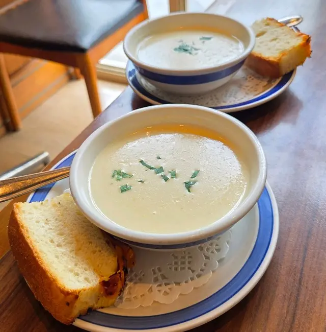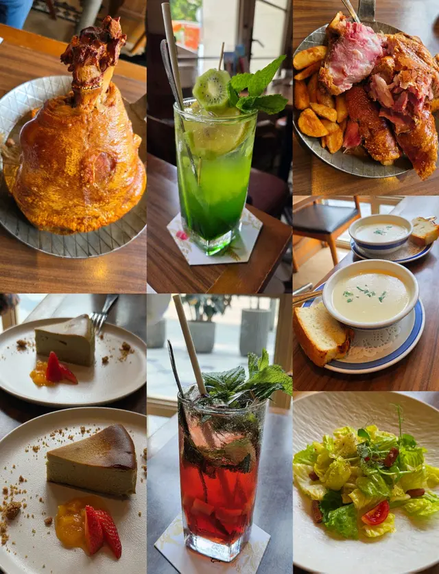 🔹️與朋友仔到銅鑼灣Fashion Walk地下 "帝樂King Ludwig Beerhall" 德國餐廳食Lunch🍽 餐廳以木系装修🪑 充滿德國傳統風味, 環境舒適寧靜🎶 食物高質👍 店員親切有禮🧑💼👩💼 價錢合宜💰 適合約埋三五知己品嚐一吓🍻Lunch Set🍽🔸️栗米湯🌽🍵是日餐湯以栗米湯, 口感綿密幼滑, 香濃栗米味道, 配上鬆軟芝士包包, 十分開胃🥖🔸️沙律🥗沙律菜鮮嫩可口、清甜爽脆🤗🔸️主菜選了📝脆皮燒豬肘配酸椰菜及炸薯角🐷💪以份量十足的豬手上陣🥘 從遠處也聞到香噴噴💞 外皮炸至十分香脆, 色澤奪目👀 肉質軟嫩幼滑, 鹹度恰度好處 ~ 好惹味👍 配醃酸椰菜絲, 酸酸哋十分開胃, 還有充滿濃郁薯香味的炸薯角🥔讚呀 😍🔸️甜品🍰是日甜品以開心果芝士蛋糕, 濃郁芝士香氣和開心果的香醇與軟滑細膩, 食完真係開心啲😄😁飲品選了💫🔸️Hibiscus Mojito🍹以蔓越苺汁、青檸汁、薄荷葉、椰果、糖漿和梳打炮製, 味道酸酸甜甜,清爽冰凍又解膩😊🔸️Kiwi Spritz 🥝🍸以蘋果汁、橙汁、蘆薈、奇異果、漿糖和梳打炮製, 顏色翠綠柔和🤩 味道清新香甜, 消暑解渴👍…查看更多