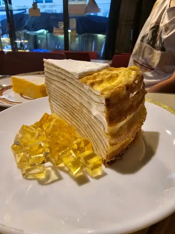 終於放暑假啦!如果你來到長洲想食西式甜品就要黎師妹甜品,特別是那個客製既大大芒果拿破崙,應該係師傅為客人整嘅生日蛋糕!炎熱既夏天,點一杯用鮮檸檬現打既「檸雜」清爽又酸甜,真是喚醒味蕾的完美選擇🍋🍹!接下來[火焰雪山]有驚喜,師傅預先拉上黑簾,營造出神秘氛圍,當酒精淋上焗好的蛋白,點火的瞬間充滿儀式感!裡面是一整杯朱古力雪糕,小朋友們肯定愛不釋手❤️。仲有[蜂蜜豆腐千層蛋糕]層層均衡,吃一口就能感受到蜂蜜啫哩的香甜同埋豆腐蛋糕既濃郁豆味,值得一試👍。最後,[心太軟]的朱古力味濃厚,甜度恰到好處,外面是蛋糕裡面卻是心軟,跟埋雲呢拿雪糕,yummy!另外,凍餅櫃裡還有原味、芒果和抹茶芝士蛋糕,以及千層蛋糕,選擇多到讓你眼花繚亂!✨ 師妹甜品長洲建新里12號地舖…查看更多