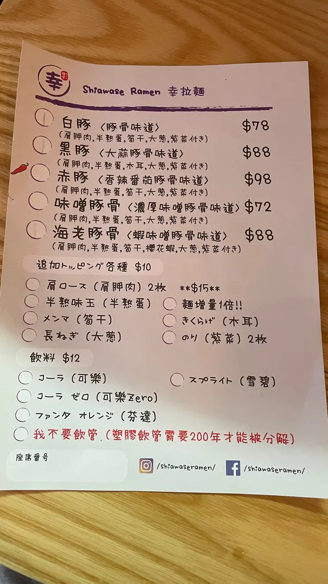 🍜幸拉麵😆•今次推介嘅係位於炮台山嘅拉麵店 由一名日本學師嘅港人主理 所有嘅配料、湯底、麵 和廚房嘅一切都由佢一人負責🙀以製作博多拉麵為主 採用一種極幼細嘅傳統乾麵 工序比起傳統生麵繁複😢店內所有嘅麵都由店主一手負責製作過程 絕對唔會假手於人🙇🏻♀️真心respect💛除此之外都好欣賞佢嘅叉燒、糖心蛋和湯底✨上面三樣我都覺得比起其他拉麵店特別🌟整體來講表現都好出色!真心好推薦大家一試🙈 (每次都山長水遠入去就係為咗食一碗拉麵🍜)————————————————❶ 赤豚 (香辣蕃茄豚骨味道) $98(肩胛肉|半熟蛋|筍干|大蔥|紫菜)📌湯底: 個人推薦 因為出面少見而且幾特別🌟豚骨湯底濃郁但絕對冇過鹹過油嘅感覺 聞落有香濃嘅蕃茄味但帶點微辣✨ 中和咗本身嘅湯底 飲落黏口順喉😆而且加深湯頭嘅味道嘅層次 (好少食拉麵會飲晒成碗湯🤫因為飲飲下會覺得好鹹 但係呢款絕對可以🌟) 上面鋪滿用上百分百嘅新鮮蕃茄蓉和辣肉碎 有麻嘅後勁 食食下覺得少似肉醬意粉嘅味道🤣 另外有專屬嘅芝士粉 個人覺得味道都唔錯 但落咗之後更加似肉醬意粉😂📌肩胛肉:叉燒選用係每日新鮮用原條歐洲梅頭肉醃味按摩 紮起定型 慢煮入味 再即叫即切 每一塊肥瘦恰好 軟腍嫩滑 肉味比較豐富 而且切得比一般叉燒薄 更容易吸收湯汁 同時一啲都唔覺得油膩😋個人極推薦!📌半熟蛋:流心蛋真係好出色 我會比滿分😂生熟度控制得啱啱好 蛋醃製得好入味 同時蛋味濃郁 甜甜嘅蛋黃 再加埋拉麵🍜好夾好match🌟📌麵質:用上極幼身麵🍜由於麵條含水量較少 所以食落偏硬身 勁爽口彈牙😆(個人極鐘意食偏硬身嘅麵質) 而且相當掛湯💯 (平時去其他拉麵舖食啲極幼身嘅麵因為冇控制好麵嘅軟硬度 所以好易出現糊嘅情況🥲或者淋patpat🥲 但難得呢間兩者嘅平衡做到啱啱好😭好感動)❷海老豚骨 (蝦味噌豚骨味道) $88(肩胛肉|半熟蛋|櫻花蝦|筍干|大蔥|紫菜)📌湯底:呢個湯底真心值得一試🌟蝦膏味好重 濃郁鮮甜 配上大量嘅櫻花蝦🦐但同時不失豬骨嘅香甜 兩者平衡得好好😆如果鍾意海老湯底就一定要試吓😍❸黑豚 (大蒜豚骨味道) $88(肩胛肉|半熟蛋|木耳|大蔥|紫菜)📌湯底: 嚟到已經聞到勁香濃嘅黑蒜油香味✨配上新鮮蒜泥 所以湯底明顯比其他濃郁 一入口非常香醇 兩隻味道唔會互相搶咗 仲食到蒜頭微微嘅辣 加深咗湯頭層次嘅變化 個人係幾鍾意 (不過偏重口味嘅關係 食到中間有少少食膩咗)🤣 不過一入口嘅時候真係好有驚喜💛➍白豚 (豚骨味道) $78(肩胛肉|半熟蛋|木耳|大蔥|紫菜)📌湯底:最原始嘅豚骨湯底 由過百件豬骨逐一清洗然後熬製而成 至少熬製10小時 愈簡單嘅就要愈體現到師傅嘅功架 相比起其他湯底清淡 但肉味都好出 啖啖豬骨香味😋特別要稱讚嘅係店內提供嘅水 夠晒冰凍🌟喺夏天嘅時候解渴一流🤣💯總括嚟講係一間性價比極高嘅拉麵小店 雖然得一人負責 但對店內對每一樣細節都非常認真 而且都做得好好💛💛所以真係好值得試吓✨————————————————🌟歡迎留言話俾我哋知你哋食完嘅feedback🥰•🍴 幸拉麵 📍 北角電氣道183號友邦廣場地下19號舖•…查看更多