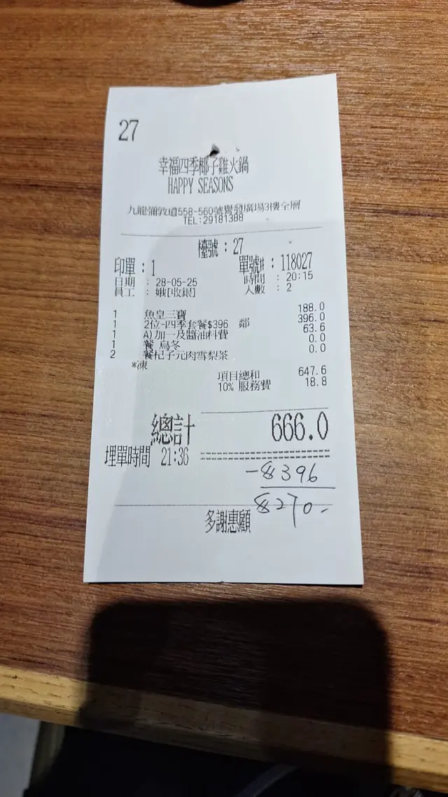 幸福四季椰子雞 (譽發廣場) (油麻地) 網上訂座享低至7折優惠兼賺Rice Dollars 網址: https://s.openrice.com/QrbS0iki900 地址: 香港油麻地彌敦道560號譽發廣場3樓 電話: +852 29181388