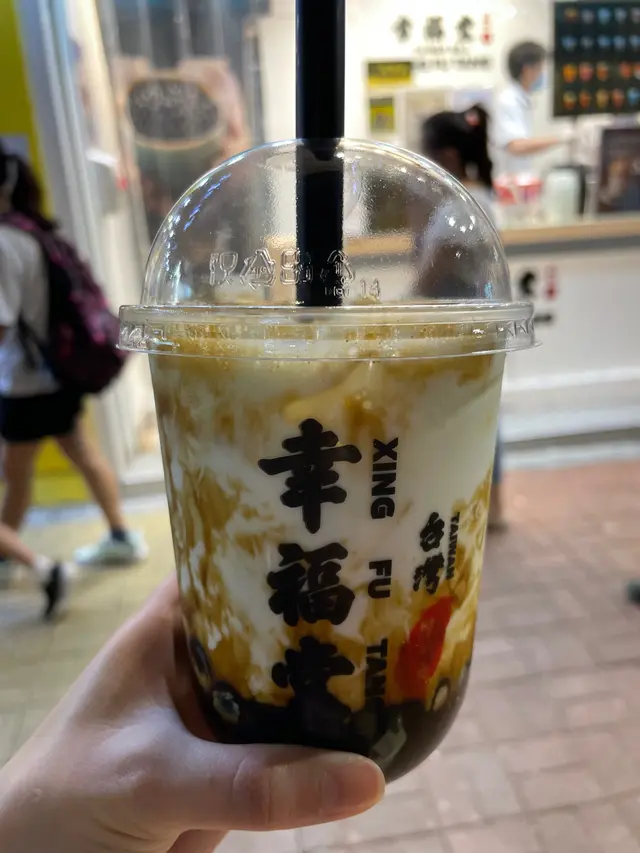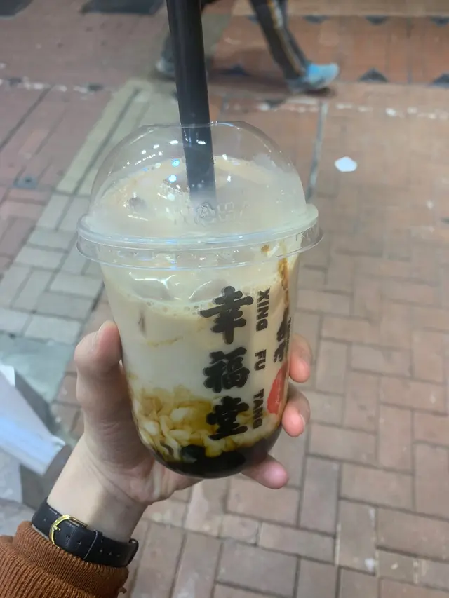 香港的幸福堂餐單和食材原料都跟足台灣主店,一直以來保持到跟台灣一樣既品質和味道,最出名的是黑糖珍珠鮮奶,主打每日現煮黑糖珍珠,在店門口就會有一個大炒鍋在翻炒很吸晴,但今次買的選擇當然又是芋頭鮮奶 ^^店舖:幸福堂品項: 芋頭鮮奶價錢: $30呀Ju感想:店員給我的時候,呀Ju有點懷疑人生,怎麼這麼大杯????? 芋頭是比較有實體的芋頭粒,喝下去不夠芋頭味,可能是鮮奶太多沖淡了芋頭的香味,除了間中咬到芋頭粒粒之外就跟喝平常鮮奶一樣,雖然性價比高但不太推薦.…查看更多