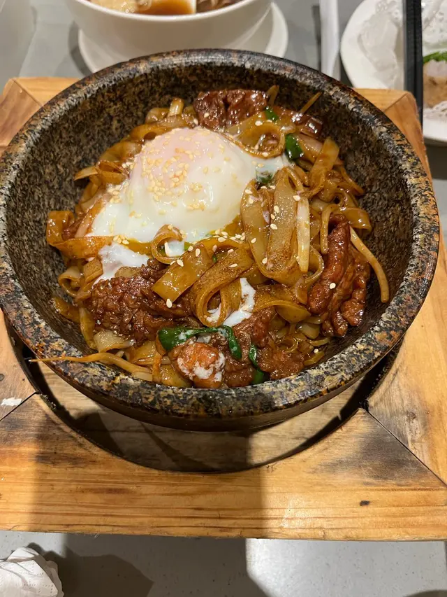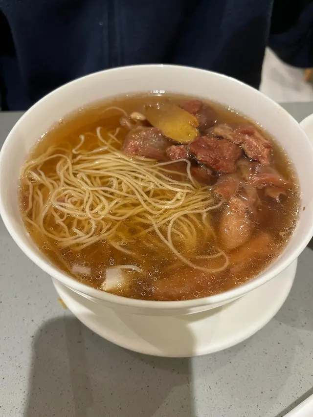 同朋友兩個人食飯,叫左碗牛根腩雲吞竹昇麵,雲吞有四粒同牛根腩份量都足,湯底鮮甜,竹昇麵都好煙靭,有咬口,但麵的份量偏少,胃口大啲嘅人可能唔夠飽。友人叫左溫泉蛋石鍋乾炒牛河,河粉好淋身,無咩鑊氣,而且牛肉得4-5塊左右,上面加左隻溫泉蛋令到個河粉再滑身啲,多左陣蛋味,但同時都令到碗麵更加膩,友人食唔曬就停左手。另外,佢成個餐都偏貴大概70-100蚊,一個主食配一邊野飲,要讚佢野飲種類好多,我叫左薑檸蜜,友人叫左南北杏雪耳糖水,但整體黎講都係有啲啲貴😮‍💨想食竹昇麵可以試試,但乾炒牛河就不了。 查看更多
