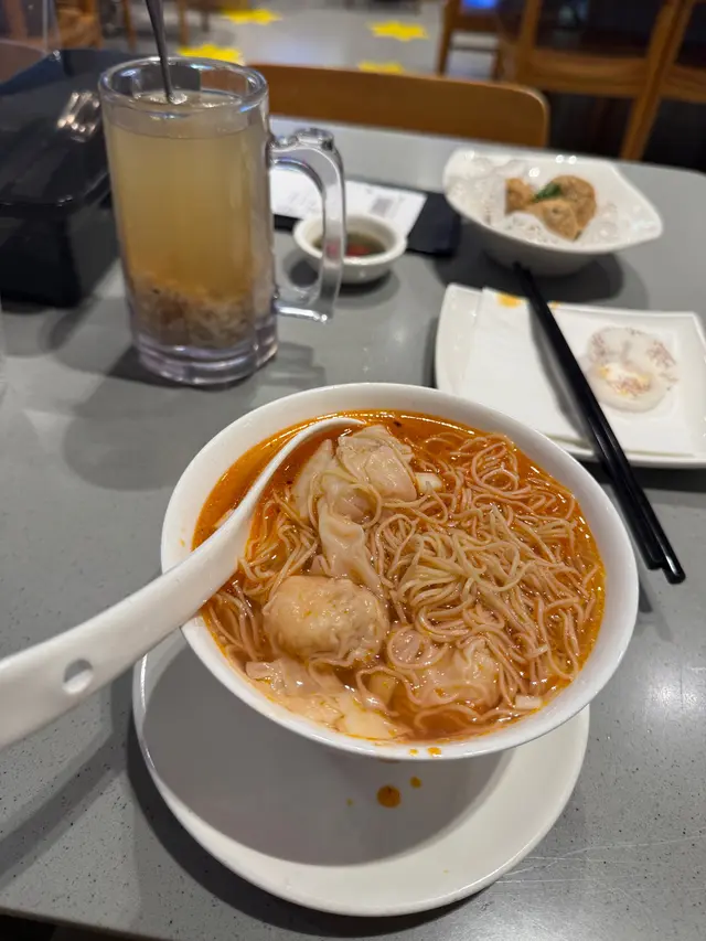 如果是吃蛋撻、菠蘿油一類,拎走吃會比堂食更划算。如果吃小食,可以點套餐後選擇➕。🌟紅油孖寶(雲吞🥟各兩隻)38(如果是套餐後➕是26)雲吞的皮很薄,裡面有整隻蝦,4隻根本不夠吃嘛紅油的醬汁裡還有蒜和辣椒,淋上十分加分~🌟豬手竹昇麵+凍薏米水+菠蘿包豬手很軟爛,還貼心的附贈小碗裝骨頭菠蘿包大讚,要趁熱吃~香甜酥軟薏米水裡面有姜,介意姜的朋友注意不要忘記滿30可以用-7的優惠券~不然就真的太貴了⋯⋯查看更多