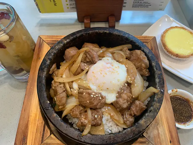 寫在前面:牛肉非常嫩!讚👍行路經過好多次,以為只有菠蘿包一類賣,今天才發現也可以吃午飯,就進來試下。食客众多,裝修精緻,餐牌也一目了然,這一點很多茶餐廳都做不到。我叫咗溫泉蛋牛肉石鍋飯,小貴,105包嘢飲,銀耳糖水(熱)一支蛋撻+8牛肉,太讚了,入口非常嫩,脂肪香氣,給的量也多,配上洋蔥和溫泉蛋,熱熱的石鍋燙出鍋巴,真不愧是招牌!蛋撻一般,夠嫩不夠甜,沒什麼蛋香…包蛋撻的紙有口水味飲品料足,別的茶記一般沒有所以可以試下共113,送了兩張-7的優惠券,下次想來試試面查看更多