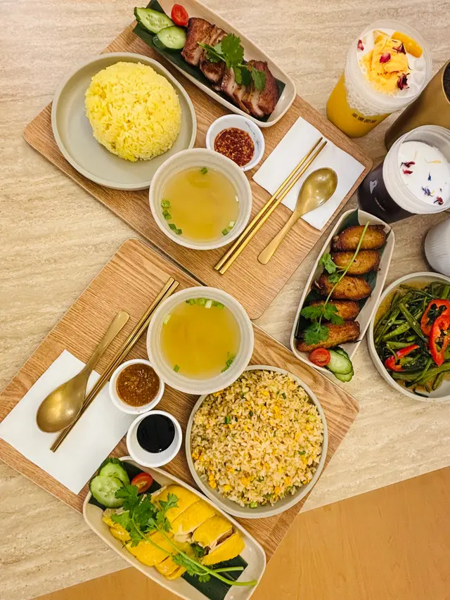 ♖∥ 在火鍋店對面,落地玻璃門面,室內面積不大,設計簡單直接,有卡位和圓枱,全日免收加一。゚・𖥸────── -ˋˏ 𝓜𝓮𝓷𝓾 ˎˊ- ──────𖥸 。゚・𓌉◯𓇋 海南雞套餐 HKD78加$6升級套餐,有飲品和甜品,主食有多種選擇,媽媽選了蝦醬炒飯,海南雞肉質嫩滑,炒飯不會過鹹!𓌉◯𓇋 泰香金黃雞翼(4件)HKD78主食是冬蔭功酸辣湯麵(少麵),個人較喜歡這種微酸辣湯底,加上少量蕃茄和菇,都很飽肚!雞翼炸得皮脆肉嫩,好惹味!推介!♂ 參巴火辣脆雞(6件)HKD38件件炸雞好大塊,入口其實不辣,炸粉很脆身,點參巴醬更惹味。♂ 碳烤雞肉串(2串)HKD24燒得好有焦香味,但不是燶!點少許辣醬更添風味!♔ 鮮芒果麻糬 HKD58好足料!底層是綿綿白色麻糬,配搭有芋圓、大粒芒果肉、粒粒爆珠,好濃郁芒果汁糖水底,入口啖啖清甜!推介必點糖水!提提這是凍糖水!♔ 燕窩紫米露 HKD42媽媽喜歡熱,特意點了這款美顏糖水,紫米露燉得很綿滑又有粒粒嚼口,最重要是不會過甜,剛剛好!☕︎ 熱蕎麥茶+芝麻糊 HKD6份量不多,芝麻糊好稠身!̍̊˙· 𓆝.° 。˚𓆛˚。 °.𓆞 ·˙‧̍̊ ‧̍̊˙· 𓆝.° 。˚𓆛˚。 °.𓆞 ·˙‧̍̊…查看更多