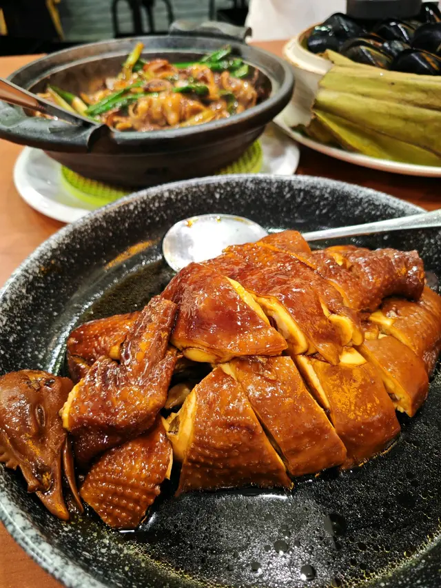 趁假期最後一日,就今晚同班朋友餐聚,有朋友帶咗我地去港島食好嘢,係一間特色嘅中菜店。店子整齊企理,環境光猛,座位唔少。適合三五知已或大夥兒聚餐。有很多選擇,分了牛、豬、雞、魚、海鮮類、素類、菜類、豆腐、粉麵飯、小食、鍋物、生滾湯等。我哋就揀咗四款店小二特別推介。薑蔥爆鯇魚泡($198)熱辣辣上枱,喳喳聲,好香!全煲都係鯇魚泡,份量好足,難得!當中有爽的,也有滑的,很鮮香,用大量薑蔥炮製,整得入味,鹹香惹味,食到我津津有味。萬字醬油雞 ($208/半隻)註明用三種醬油炮製,有日本萬字醬油、台灣醬油膏和李錦記甜豉油,即叫即浸,下功夫之作!半隻雞嘅份量唔少,仲好有肉,皮爽肉嫩,配搭三種醬油,味道果然獨特,還配了一些爽口的菇菌,同樣整得入味。糟鹵蒸咸鮮馬友($338)註明係來自台灣,有保証!魚起飛狀,賣相很吸引,並以糟鹵蒸製,鮮嫩嘅魚肉啖啖酒香,當相特別,再加了些金華火腿絲,添鹹香之餘又可除魚腥,仲更矜貴,好好味,推介!連墊魚底嘅蔥都有酒香,喜歡!避風塘茄子($128)件件金黃,外脆內嫩,香口惹味,配啤酒一流!茄子雖係吸油之物,但食落完全無油淋淋,做得好!…查看更多