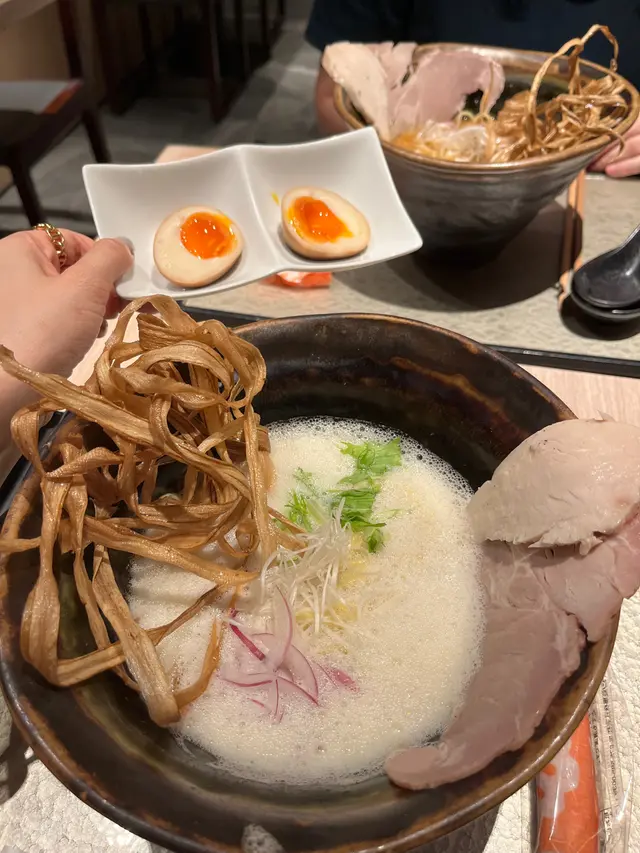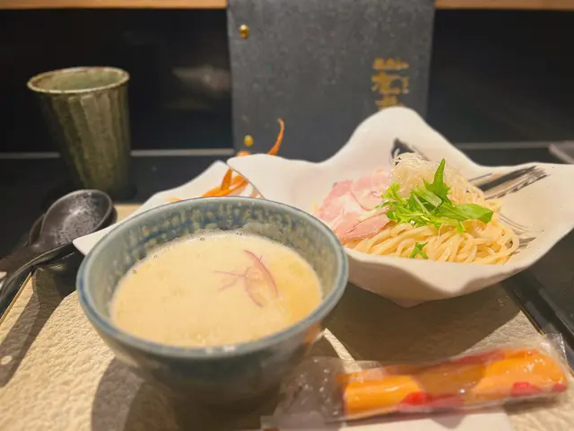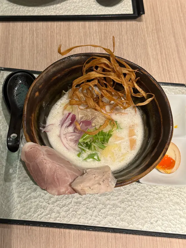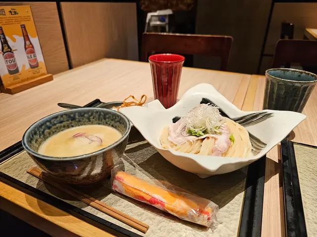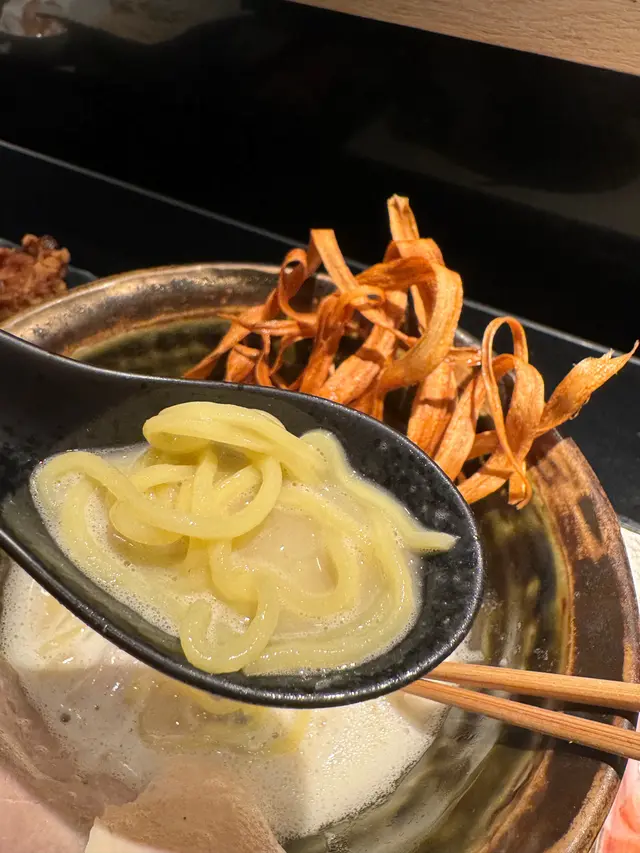 座銀Zagin Soba|雞白湯濃郁到掛勺,絕對是拉麵控與日料愛好者的隱藏寶藏! 🔥 招牌必點 雞白湯拉麵 湯頭一上桌便飄來濃郁香氣,泡沫雞湯 乳白色湯底口感如絲綢般綿密,入口鮮甜帶層次,尾韻還有淡淡膠質黏唇感。搭配自家製的中細麵,彈牙掛湯;叉燒薄切嫩而不柴🍗 座銀炸雞 外脆內嫩金黃外皮酥脆不油膩,咬下瞬間肉汁迸發,雞腿肉醃得入味,一份三件根本不夠分🥚果木煙燻糖心蛋 蛋黃呈半凝固琥珀色,濃郁蛋香與煙燻氣息在口中交織,單吃或配拉麵都超加分~ 🍣 火炙牛肉壽司 和牛級享受 非拉麵類的隱藏王牌!火炙逼出油脂焦香,肉質軟嫩近乎入口即化…查看更多