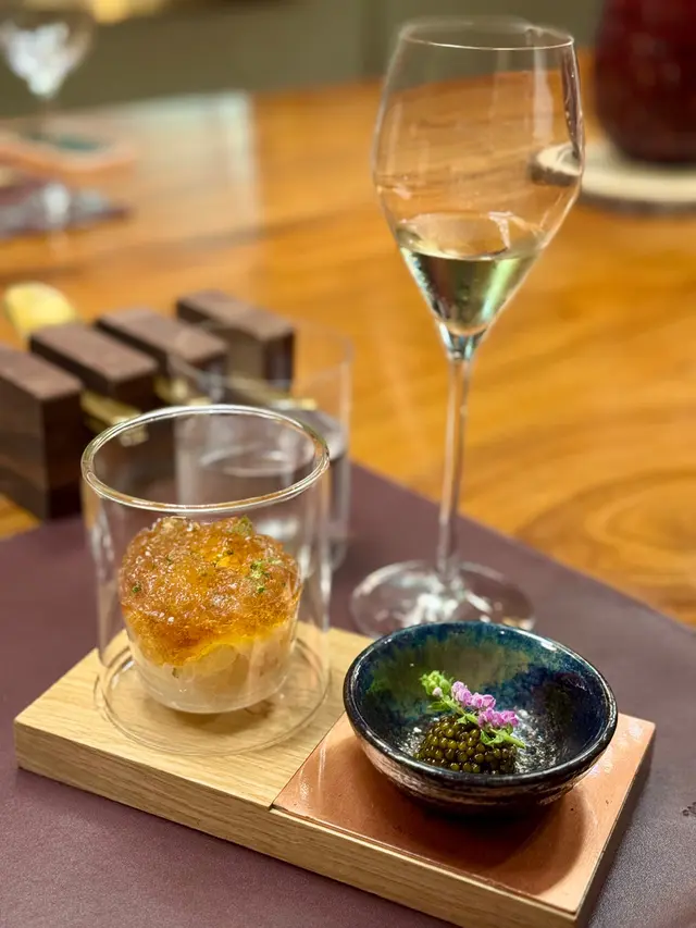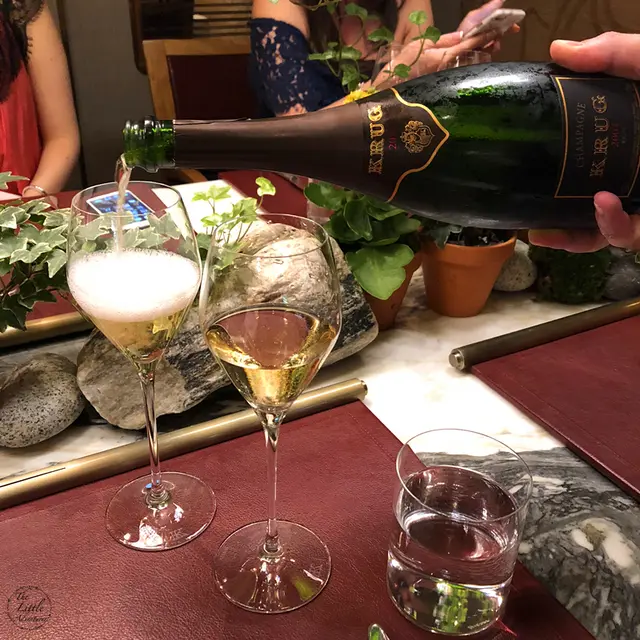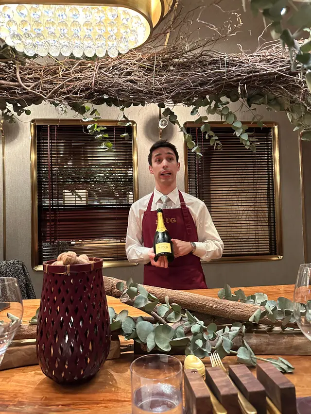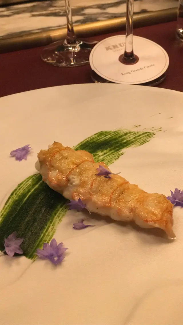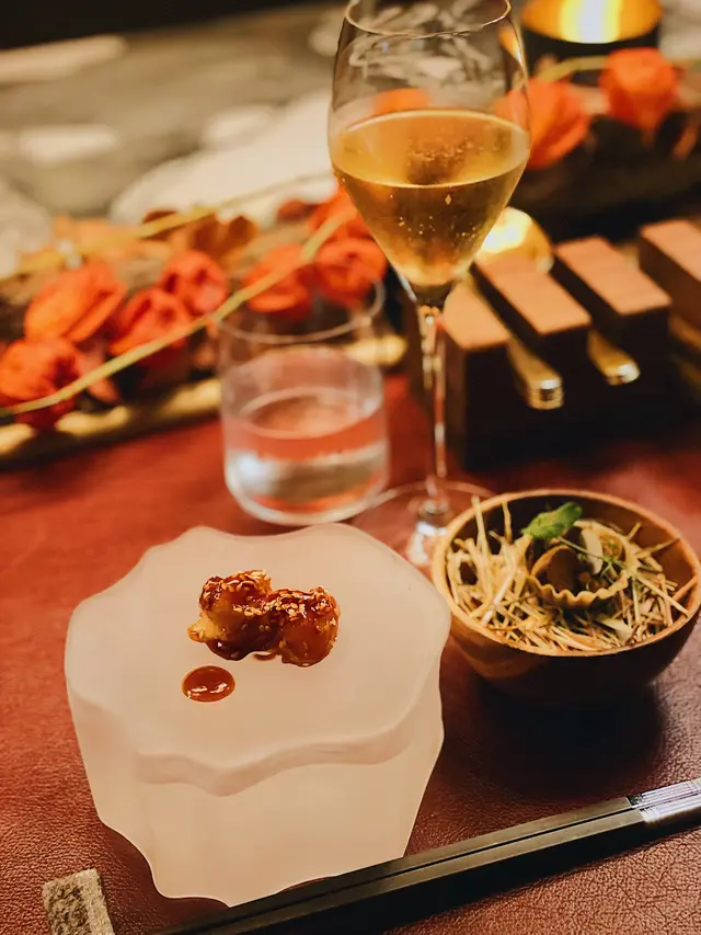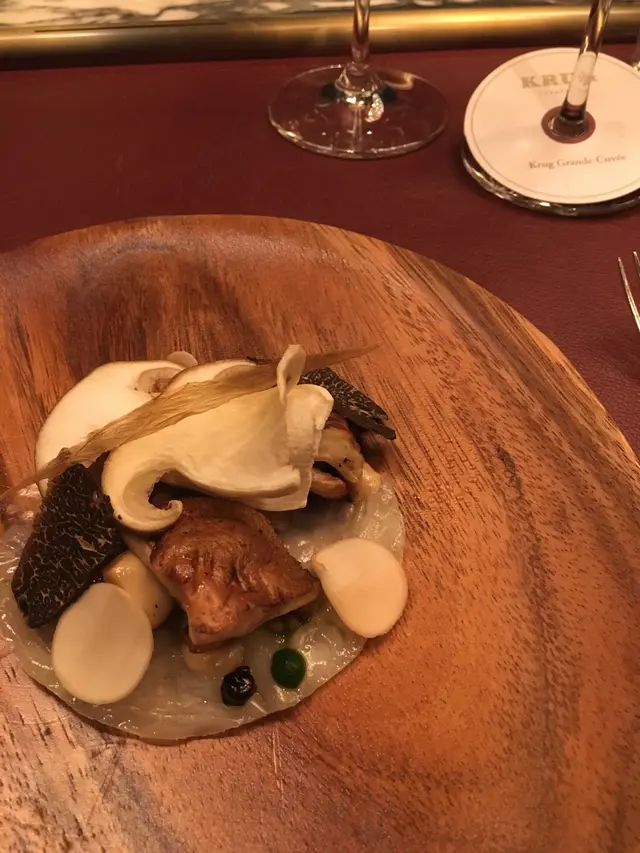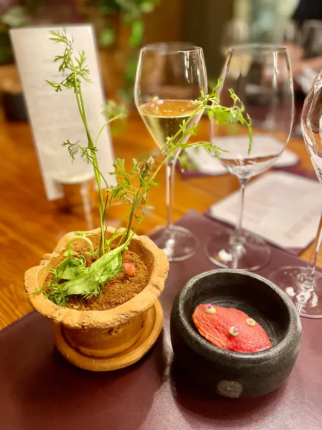 全球唯一以香檳品牌 Krug 🍾命名的餐廳,如果你是香檳愛好者,這裏絕對是一個不容錯過的用餐體驗🍽️。這間獨特的餐廳每晚僅招待六至八位客人 ,只提供一款廚師發辦餐單📕,並專屬的 Krug 香檳配對晚餐🥂🍾。菜單由行政主廚 👨🏻🍳Robin Zavou 精心打造,這些菜品採用當季新鮮食材,並與四杯 Krug 香檳🥂完美搭配,讓賓客在味蕾上體驗到頂級的美味👅。用餐當晚,客人需遵循衣著要求👔,準時於酒店一樓的「文華扒房及酒吧」登記 🕒。專人將帶領客人進入隱藏於酒吧廚房內的密室🖼️,這裡擁有極高的私隱度🔒,讓賓客在私密的環境中享受奢華的美食 ✨。Krug Room 的佈置彷彿是一個奢華的火車貴賓室 🚂,內部裝飾根據季節而變化,目前以花草和緩衝為主題 🌸🍃,營造出如同小森林般的氛圍。客人可以透過「火車」窗戶觀賞廚師們👨🏻🍳🧑🏻🍳忙碌地準備晚餐,這不僅增添了用餐的樂趣 。服務生對香檳的知識非常豐富,為我們倒酒後,逐一介紹每一款香檳的特色 🍾。每道菜上桌時,廚師也會親自出來介紹用料和烹調方法 👨🍳。當晚我們共品嚐了 11 道菜,包括 3 道開胃菜、3 道前菜、2 道主菜和 3 道甜點 🍰。我們晚上 6:30 進入餐廳,10 點多才用餐結束 ⏰。以下是當天的菜單:KRUG EXPERIENCE PACKAGE📕 十一道菜搭配 4杯Krug香檳🍾HK$ 3,988.00 + 每位1️⃣ KRUG GRANDE CUVÉE 172 ÈME ÉDITION 🥂🍾這杯香檳味道較淡,帶着清新的花香,用來配搭三道清新的開胃菜✳️開胃菜▪️GARDEN CARROT, MISO, RYE這道菜呈現出小盆栽的可愛造型,黑麵包碎如同泥土 🪴,而鹹鹹的豆腐布甸底部則帶來意想不到的口感 。拔起花盆內的蔬菜 🥕🌱 ,讓人在享受視覺的同時,也感受到食物的趣味 。▪️ SHELL CRAB, TOMATO, SORREL 阿拉斯加蟹肉🦀與扁平蕃茄的結合,清新又不失海鮮的鮮美🌊,口感潤滑。▪️KRUG LOBSTER, UNI, OSCIETRA 這道是招牌菜,首先將澳洲石龍蝦 🦞 用 Krug 香檳浸泡數分鐘🍾,然後搭配上北海道海膽 和香甜的日本柚子凍 🍊。最後,再沾上魚子醬 🎣,廚師建議由上至下吃,讓每一口都充滿驚喜,令人陶醉不已👍🏻2️⃣香檳:KRUG 2011 VINTAG🥂🍾這杯香檳帶着雜莓味,口感口感濃郁,用來配搭較濃味的以下三道前菜。✳️前菜▪️SEASIDE CUSTARD, ABALONE, SEAWEED 鮑魚炆制得恰到好處,搭配木魚花汁和鮑魚膽汁🥣,鮮味十足 🌊。再加上澳洲冬季的黑松露 🍄🟫,層次更加豐富。▪️OCEAN CUTTLEFISH, LANGOUSTINE, COCONUT 魷魚🦑咖喱葉為主,椰汁味🥥濃郁,感覺有些像喇沙的味道🍲,配搭恰到好處。▪️WOODLAND ESCARGOT, GRAINS, FORAGE 🐌 紅酒煮蝸牛,非常入味,冬天黑松露的香氣溢出,口感不錯😋3️⃣ 香檳:KRUG ROSÉ 28 ÈME ÉDITION 🥂🍾帶有紅漿果和柑橘的香氣 🍊,並有輕盈的花香,泡沫柔和,精選用來配搭以下兩道主菜。✳️主菜▪️LAND ARTICHOKE, PING YUEN, TRUFFLE 平原有機雞肉🐓、雞肝、法國鵝肝🦆製成的免治雞肉,口感順滑濃郁,醬料的調味恰到好處。▪️FARM DUCK, CHERRY, TACO 整隻法國燒鴨🦆,鴨腿部分被法國椰菜包裹🥬,炸至外脆 🥢。其他部分淋上蜜糖烤至約六成熟切塊上碟 🍯,搭配車厘子汁 🍒,兩種食法,口感獨特。4️⃣香檳:KRUG GRANDE CUVÉE 172 ÈME ÉDITION 🥂🍾第四杯香檳與第一杯相同,散發著淡淡的花香和水果香,口感圓潤,非常適合搭配接下來的三款甜品。✳️甜品▪️TROPICAL VICTORIA, PINEAPPLE, PASSION FRUIT 帶來的熱帶水果風味🍍,讓人感受到夏日的清新。▪️ TREE PEACH, ALMOND, TEA 這款三層甜點結合了荔枝 mousse、杏仁蛋糕🧁和新鮮桃子🍑,並搭配紅茶味的雪糕 🍦。層次分明,甜而不膩😋▪️ CHOCOLATE, TEXTURES, FLAVORS 這個 petit four 有驚喜🍫,五種口味的薄巧克力藏於樹幹中,特別是紅莓口味🍓,令人驚艷。✳️整體來說 : 用餐體驗無疑是奢華而精緻的👑。每一道菜肴都與香檳🥂完美搭配,讓人感受到食材的層次和風味😍。…查看更多