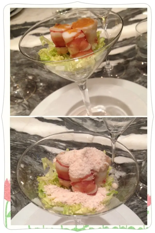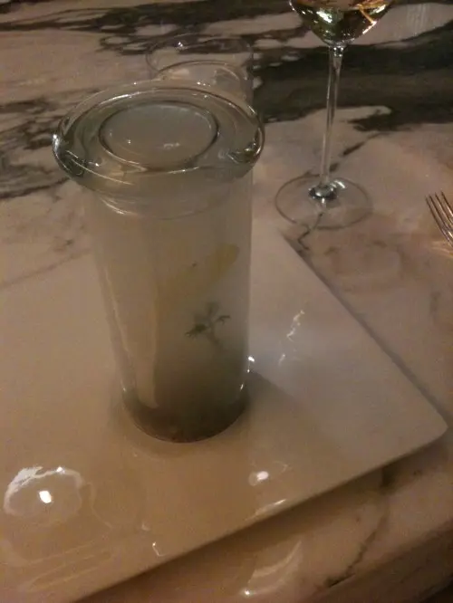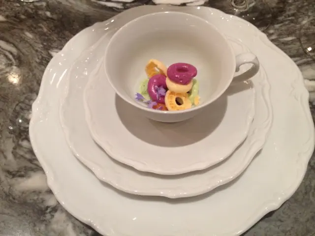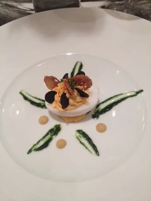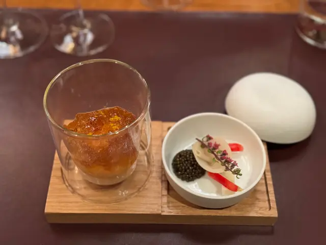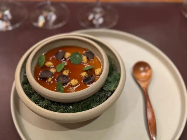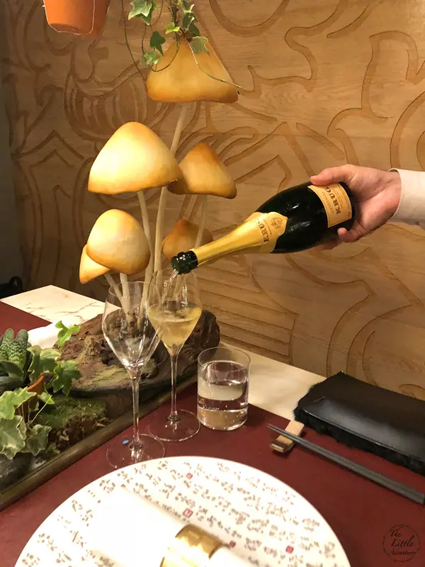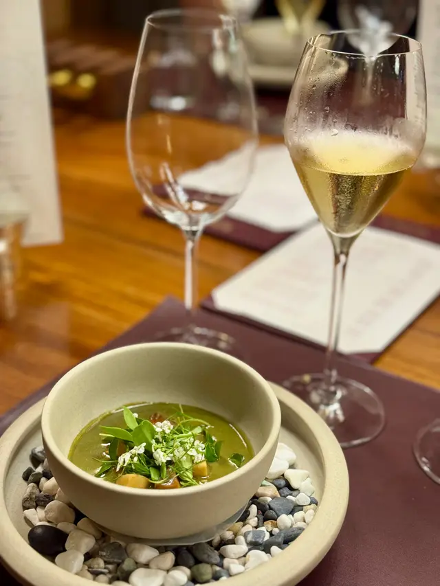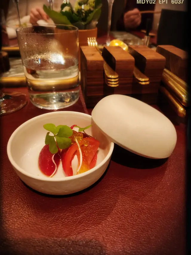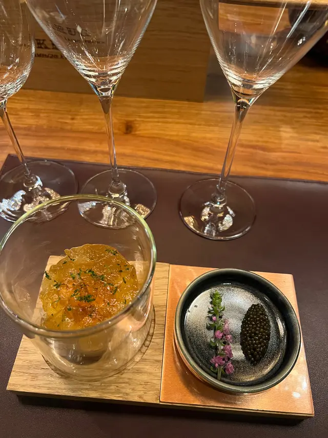 全球唯一以香檳品牌 Krug 🍾命名的餐廳,如果你是香檳愛好者,這裏絕對是一個不容錯過的用餐體驗🍽️。這間獨特的餐廳每晚僅招待六至八位客人 ,只提供一款廚師發辦餐單📕,並專屬的 Krug 香檳配對晚餐🥂🍾。菜單由行政主廚 👨🏻🍳Robin Zavou 精心打造,這些菜品採用當季新鮮食材,並與四杯 Krug 香檳🥂完美搭配,讓賓客在味蕾上體驗到頂級的美味👅。用餐當晚,客人需遵循衣著要求👔,準時於酒店一樓的「文華扒房及酒吧」登記 🕒。專人將帶領客人進入隱藏於酒吧廚房內的密室🖼️,這裡擁有極高的私隱度🔒,讓賓客在私密的環境中享受奢華的美食 ✨。Krug Room 的佈置彷彿是一個奢華的火車貴賓室 🚂,內部裝飾根據季節而變化,目前以花草和緩衝為主題 🌸🍃,營造出如同小森林般的氛圍。客人可以透過「火車」窗戶觀賞廚師們👨🏻🍳🧑🏻🍳忙碌地準備晚餐,這不僅增添了用餐的樂趣 。服務生對香檳的知識非常豐富,為我們倒酒後,逐一介紹每一款香檳的特色 🍾。每道菜上桌時,廚師也會親自出來介紹用料和烹調方法 👨🍳。當晚我們共品嚐了 11 道菜,包括 3 道開胃菜、3 道前菜、2 道主菜和 3 道甜點 🍰。我們晚上 6:30 進入餐廳,10 點多才用餐結束 ⏰。以下是當天的菜單:KRUG EXPERIENCE PACKAGE📕 十一道菜搭配 4杯Krug香檳🍾HK$ 3,988.00 + 每位1️⃣ KRUG GRANDE CUVÉE 172 ÈME ÉDITION 🥂🍾這杯香檳味道較淡,帶着清新的花香,用來配搭三道清新的開胃菜✳️開胃菜▪️GARDEN CARROT, MISO, RYE這道菜呈現出小盆栽的可愛造型,黑麵包碎如同泥土 🪴,而鹹鹹的豆腐布甸底部則帶來意想不到的口感 。拔起花盆內的蔬菜 🥕🌱 ,讓人在享受視覺的同時,也感受到食物的趣味 。▪️ SHELL CRAB, TOMATO, SORREL 阿拉斯加蟹肉🦀與扁平蕃茄的結合,清新又不失海鮮的鮮美🌊,口感潤滑。▪️KRUG LOBSTER, UNI, OSCIETRA 這道是招牌菜,首先將澳洲石龍蝦 🦞 用 Krug 香檳浸泡數分鐘🍾,然後搭配上北海道海膽 和香甜的日本柚子凍 🍊。最後,再沾上魚子醬 🎣,廚師建議由上至下吃,讓每一口都充滿驚喜,令人陶醉不已👍🏻2️⃣香檳:KRUG 2011 VINTAG🥂🍾這杯香檳帶着雜莓味,口感口感濃郁,用來配搭較濃味的以下三道前菜。✳️前菜▪️SEASIDE CUSTARD, ABALONE, SEAWEED 鮑魚炆制得恰到好處,搭配木魚花汁和鮑魚膽汁🥣,鮮味十足 🌊。再加上澳洲冬季的黑松露 🍄🟫,層次更加豐富。▪️OCEAN CUTTLEFISH, LANGOUSTINE, COCONUT 魷魚🦑咖喱葉為主,椰汁味🥥濃郁,感覺有些像喇沙的味道🍲,配搭恰到好處。▪️WOODLAND ESCARGOT, GRAINS, FORAGE 🐌 紅酒煮蝸牛,非常入味,冬天黑松露的香氣溢出,口感不錯😋3️⃣ 香檳:KRUG ROSÉ 28 ÈME ÉDITION 🥂🍾帶有紅漿果和柑橘的香氣 🍊,並有輕盈的花香,泡沫柔和,精選用來配搭以下兩道主菜。✳️主菜▪️LAND ARTICHOKE, PING YUEN, TRUFFLE 平原有機雞肉🐓、雞肝、法國鵝肝🦆製成的免治雞肉,口感順滑濃郁,醬料的調味恰到好處。▪️FARM DUCK, CHERRY, TACO 整隻法國燒鴨🦆,鴨腿部分被法國椰菜包裹🥬,炸至外脆 🥢。其他部分淋上蜜糖烤至約六成熟切塊上碟 🍯,搭配車厘子汁 🍒,兩種食法,口感獨特。4️⃣香檳:KRUG GRANDE CUVÉE 172 ÈME ÉDITION 🥂🍾第四杯香檳與第一杯相同,散發著淡淡的花香和水果香,口感圓潤,非常適合搭配接下來的三款甜品。✳️甜品▪️TROPICAL VICTORIA, PINEAPPLE, PASSION FRUIT 帶來的熱帶水果風味🍍,讓人感受到夏日的清新。▪️ TREE PEACH, ALMOND, TEA 這款三層甜點結合了荔枝 mousse、杏仁蛋糕🧁和新鮮桃子🍑,並搭配紅茶味的雪糕 🍦。層次分明,甜而不膩😋▪️ CHOCOLATE, TEXTURES, FLAVORS 這個 petit four 有驚喜🍫,五種口味的薄巧克力藏於樹幹中,特別是紅莓口味🍓,令人驚艷。✳️整體來說 : 用餐體驗無疑是奢華而精緻的👑。每一道菜肴都與香檳🥂完美搭配,讓人感受到食材的層次和風味😍。…查看更多