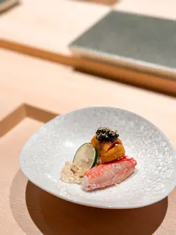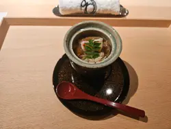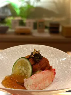 鮨店位於堅道微偏離繁囂嘅SOHO區 環境寧靜舒適裝潢由日本設計師操刀 簡潔典雅🪴今次試咗晚市HK$1,880嘅廚師發辦 有8款頭盤刺身前菜+8貫寿司+太卷+湯+甜品整體食物頗有水準 價錢相當合理✨餐單以紫蘇葉凍蕃茄同Miyabi九州雅鯛開頭 清新開胃☺️跟接住味鮮嘅北海道馬糞海膽毛蟹及輕脆嘅瀨尿蝦天婦羅 自家煙燻鰹魚肉質口感軟綿😗重頭戲係追加嘅招牌慢煮鮑魚配鮑魚肝醬🥰鮑魚手板咁大 煮得超級軟腍 香甜入味好喜歡象拔蚌壽司 灑上海鹽同當季sudachi仲有長崎野生吞拿魚同青森縣白海膽而結尾嘅蜆汁麵豉湯真喺滿滿umami味蕾大爆炸😽另外發現原來lunch omakase定價都只喺HK$580 非常都抵食_Dinner Omakase (HK$1,880)(8款頭盤刺身前菜/8貫寿司/太卷/湯/甜品)トマト,しそ,梅ゼリー Tomato, Perilla Leaf, Plum Jelly 鯛の刺身 Snapper Sashimi シャコ天ぶら Mantis Shrimp Tempura 魚籽醬雲丹毛ガニ Caviar Sea Urchin Hairy Crab スモーク鰹 Smoked Bonito 茶碗蒸し Steamed Egg Custard 鰯ロール Sardine Roll 目光塩焼き Salt Grilled Mehikari[鮑の低温調理 肝ソース添え Slow Cook Abalone with Abalone Liver Sauce🌟追加料金(+HK$240)] 平目 Flounder Sushi しまえび Striped Shrimp Sushi 海松貝 Geoduck Sushi🌟小肌 Gizzard Shad Sushi 赤鯥 / キンキ Rosy Seabass Sushi/Channel Rockfish トロ Fatty Tuna Sushi🌟雲丹 Sea Urchin Sushi カマス Barracuda Sushi太卷き Futo Maki🌟玉子焼き Tamagoyaki 蛤味噌汁 Clam Miso Soup🌟季節果物 Seasonal Fruits…查看更多