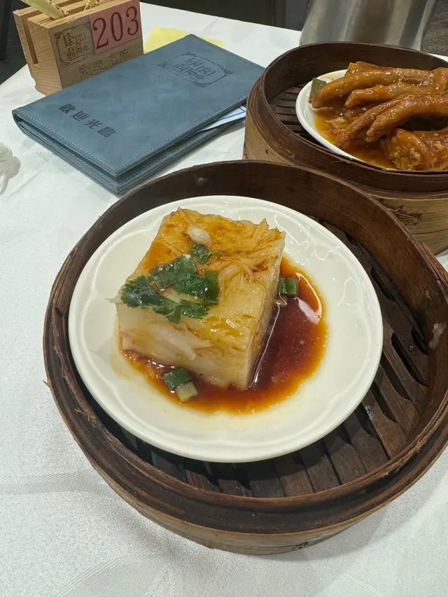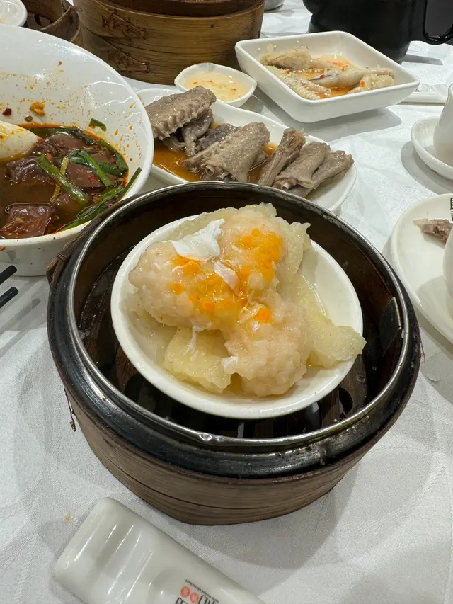 整體既點心份量,都比起之前食既細份左。🥲 同埋晏3點去,所有大排檔美食既都已經賣哂,冇得叫了。鮮蝦餃🙃皮較厚,但內餡係爽口。蟹籽香茹滑燒賣🙃厚實嚡口鬆軟蜜汁叉燒包🙃唔太鬆軟,內餡較小,味道正常,感覺蒸耐左,個包底有D濕時令豆苗彎梳餃❤最好食! 大愛,皮薄多餡懷舊香芋鴨腳扎🙃所有配料整體都細份,味道正常鮮冬茹蟹棒棉花雞🙃賣相有D頹黑椒面筋蒸爽肚❤幾惹味,份量都算多,豬肚唔算好肥,好食!南洋咖哩蒸土魷❤好香口,咖哩汁較稀身,份量正常薑米鮮茹雞包仔🙃感覺都係蒸耐左,個包底有D濕明太子百花釀魚肚❤呢個點心係我地一直都好中意鳳爪排骨飯❤必點飽肚之選,飯粒粒粒分明,鳳爪排骨都好香口生菜鮮蝦水🙃 同超市買既某個黃綠包裝牌子既鮮蝦水餃冇咩分別。韭黃原隻鮮蝦腸🥲皮厚,蝦細隻~查看更多