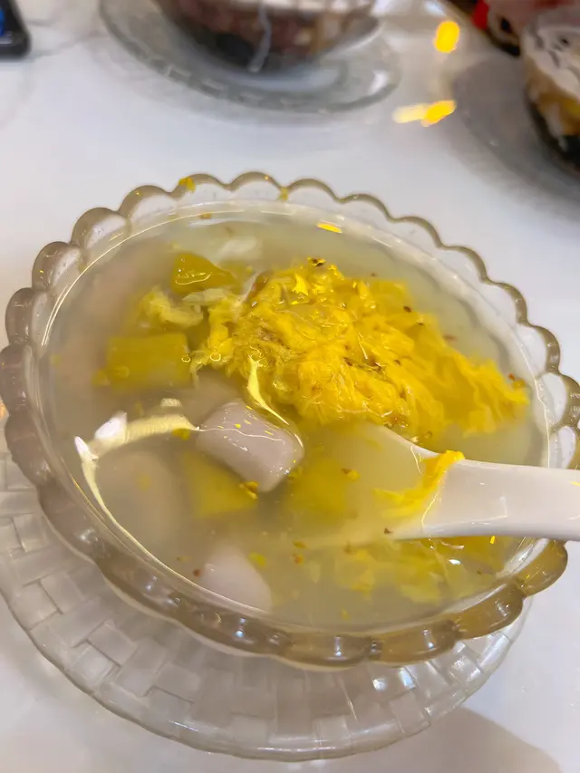 而且有嫩滑嘅蛋花襯托,口感無咁單調。另外,佢嘅芋圓地瓜圓雖然唔太大粒,但係都算煙韌