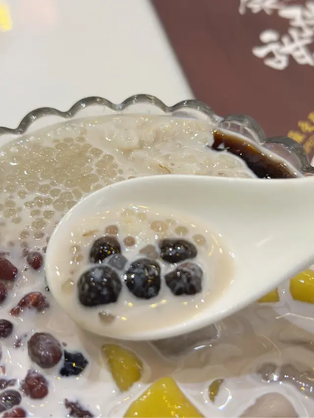 而且有嫩滑嘅蛋花襯托,口感無咁單調。另外,佢嘅芋圓地瓜圓雖然唔太大粒,但係都算煙韌