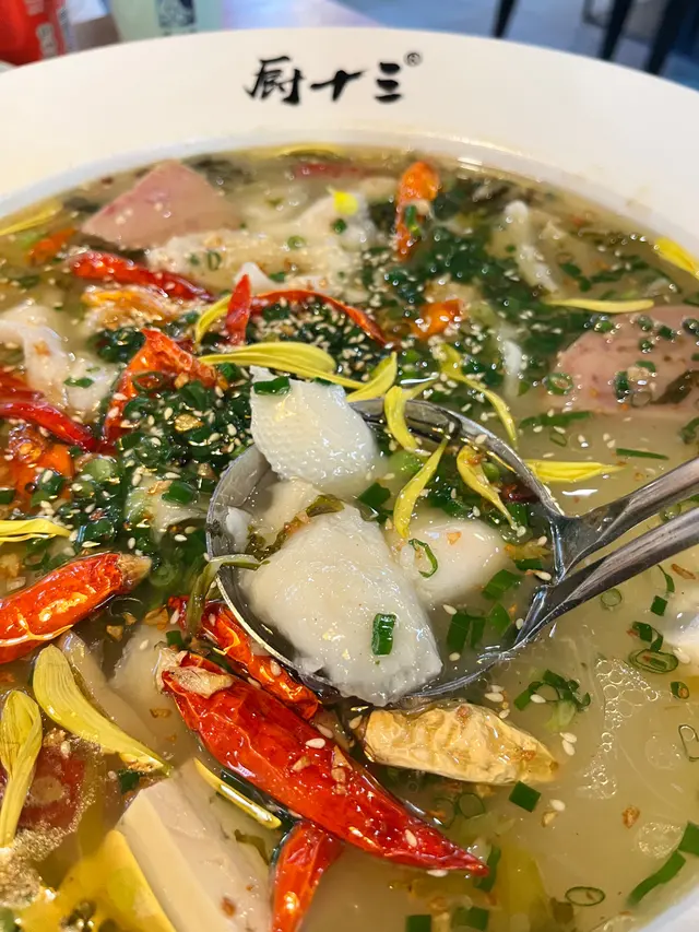 身為酸菜魚愛好者,緊係周圍搵好味嘅酸菜魚!網上見到唔少人分享過「廚十三」呢間酸菜魚,緊係要試試佢😋.🍴小份酸菜魚雖然話小份,但份量好多,足夠三個人食都得😄呢份酸菜魚入面已經包埋粉絲,我地自己另外加萵筍、蓮藕、白飯已經好飽😋👍🏼.味道方面,今次叫左小辣,但都唔會好淡,味道岩岩好!鐘意食辣嘅朋友仲可以嗌中辣或大辣😋.魚肉方面,肉質鮮滑,唔腥又無骨,呢個價錢食到咁好質素嘅酸菜魚,真係性價比高!😋😋.不過餐廳提供嘅飲品種類就比較少,主要係樽裝/罐裝飲品,例如汽水、王老吉。如果可以有更多特色飲品就更好啦!😄查看更多