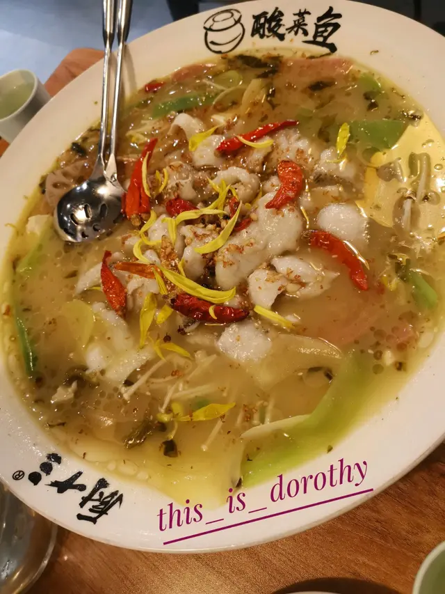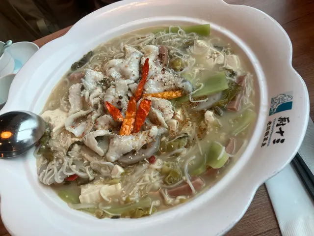 口痕想食酸菜魚就試吓呢間😬晚餐食飯叫咗個老壇酸菜魚,另外加咗薯粉同埋金菇,個湯底酸酸辣辣好好食!而且好開胃,配合埋薯粉軟糯的質感,最鍾意酸菜魚係配襯薯粉,另外叫咗個白飯,酸菜魚送飯係一流!👍🏻👍🏻😋鍾意食酸菜魚都可以嚟試吓!查看更多