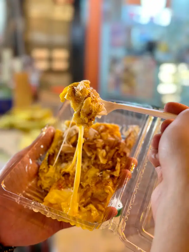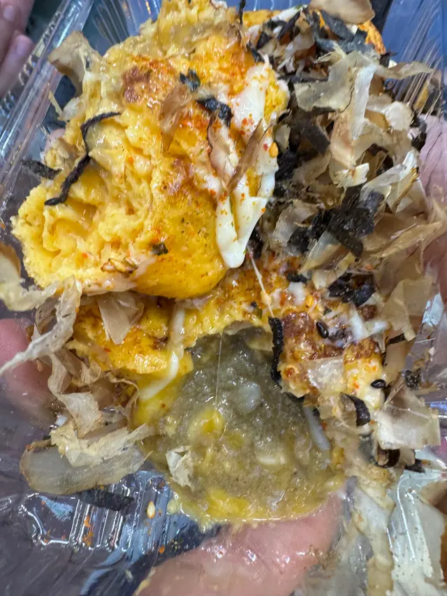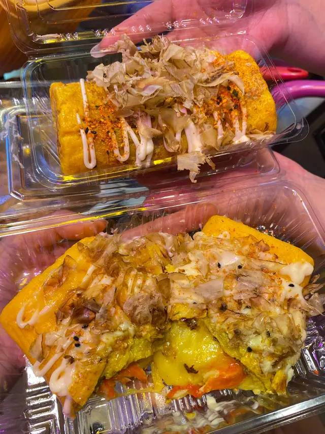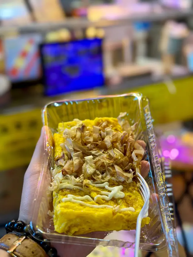 話說今年行維園年宵見到廟街玉子燒有擺檔,本來想幫襯,但睇見條隊咁鬼長就嚇怕。上星期咁啱經過廟街,於是就過嚟食玉子燒。本來想叫個原味,哥哥話明太子或者蟹膏味多人揀,我怕明太子太鹹,於是就叫咗個蟹醬流心芝士玉子燒。原來呢度係有堂食,就係放張細細嘅 bar 櫈喺路邊當枱,一路食,隔離小販大叔就一路準備開檔,真係別有一番風味😆。講返件玉子燒,原來都唔細,亦頗厚身,塞滿咗成個透明膠盒。面頭除咗郁郁木魚絲之外,仲有沙律醬,賣相唔錯。咬一啖,即刻 feel 到入面熱辣辣嘅拉絲芝士同埋鮮甜嘅蟹膏,兩者出奇地夾,食食下仲發現原來中間隱藏咗一條蟹柳。餡料就好豐富喇,至於玉子本身亦燒得剛好,唔會太老,夠嫰滑,甜度也適中,總括嚟講,係我鍾意嘅味道🫶。查看更多