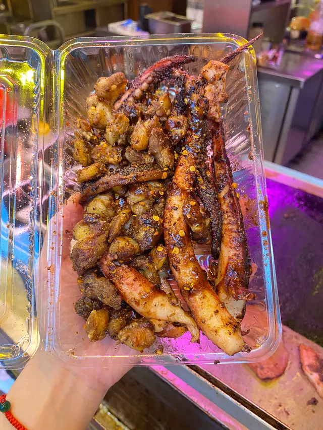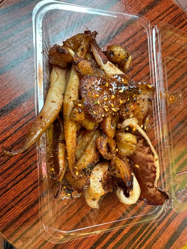 因為行過聞到好香,見佢哋塊牌寫住有鐵板燒,所以嗌咗$40一份細盒嘅魷魚鬚。見佢好快就有,都有啲驚訝,成盒攞上手係微温,食落只能夠話唔係凍,都係一早整好保温住。味道好依靠重調味去整得香口。已經有啲失望,始終呢個價錢本身expect 可以即刻鐵板燒整,新鮮熱辣同香啲。但最失望係食食吓有條細膠,kick 住係口。一問之下只係答一句係魷魚骨。即當初唔去乾淨。坦白講自己就算自己整或出面食都冇試過咁,我明白唔關衛生事,但對答嘅態度都令人失望。因為都冇話特別好食,調味太重,所以食到一半就算。查看更多