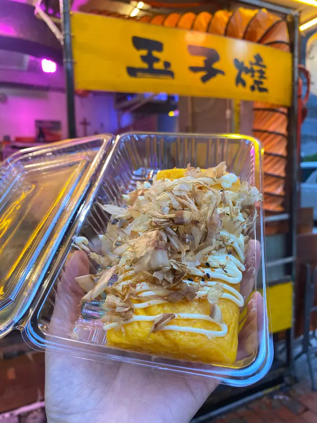 廟街就去得多,成日都係食煲仔飯,真係冇乜食過其他嘢,上網見到有人推介,話廟街去食呢個玉子燒,於是呢日就嚟試吓。小店唔係太起眼,雖然就係正十字路口,但係都冇乜人幫襯,只有老闆一個在經營,除咗玉子燒仲有其他嘢食,一齊買嘅話會優惠啲平啲,不過今次就淨係試玉子燒,冇食到其他嘢啦。至於玉子燒,都有幾個口味可以揀嘅,我哋就揀咗蟹肉蟹膏,價錢就正常啦,都唔算係特別貴嘅,而且仲係即叫即整㗎。新鮮整完出嚟,熱辣辣,即刻企喺路邊食啦,不過真係好熱㗎。玉子燒面頭有好多紫菜同魚絲,好香,啲蛋好滑,入面真係有好多蟹膏流出嚟,都幾香。查看更多