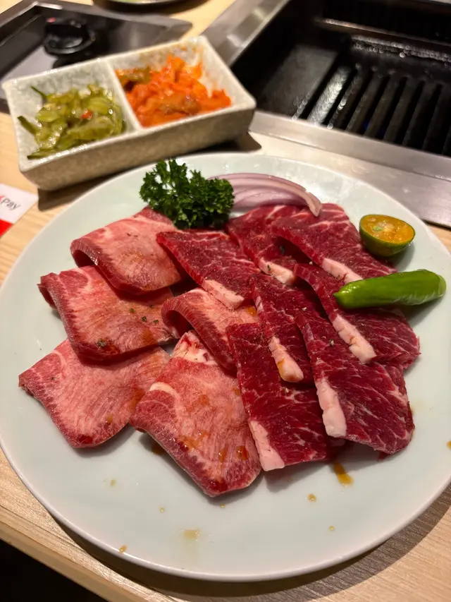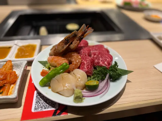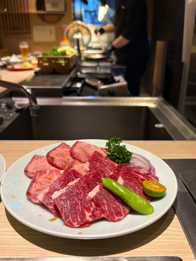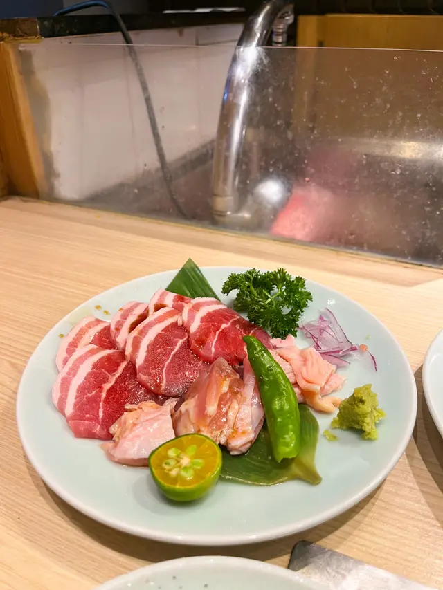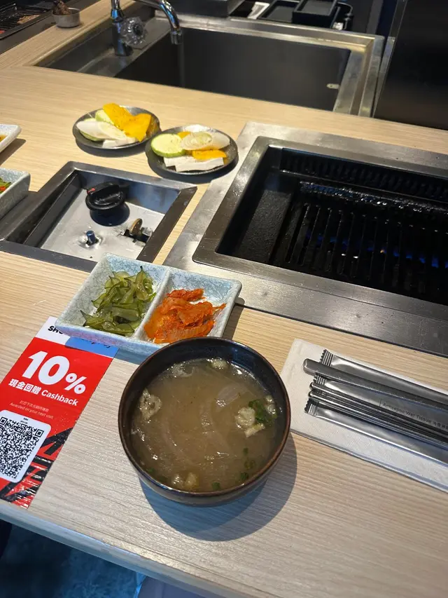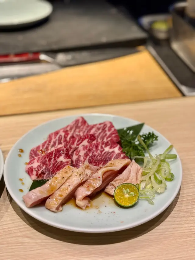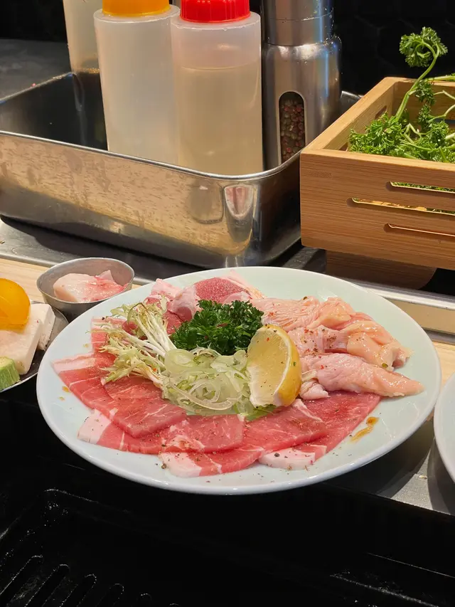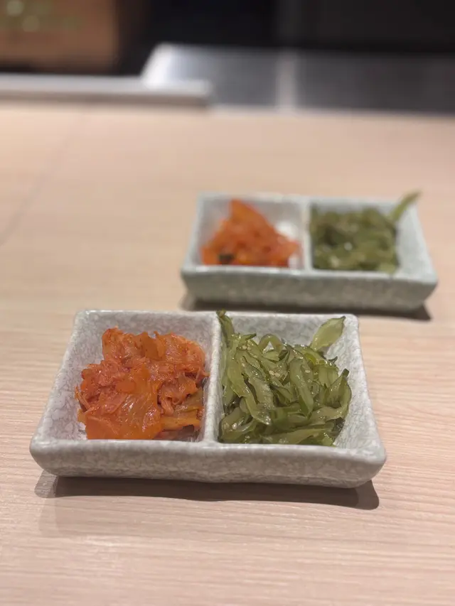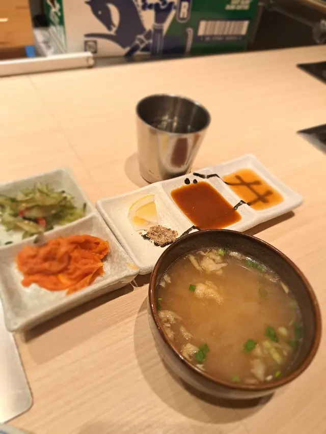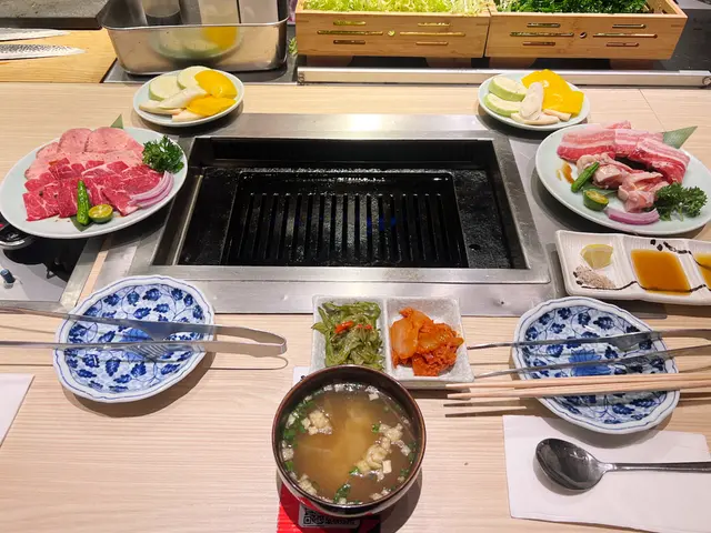 聽朋友介紹呢間位於上環的燒肉店,晚市的燒肉套餐先係每人$238,好似好抵食,今晚就黎左呢到食飯,餐廳空間唔算大,有BAR枱同四人座位,裝修偏向日系風格,仲會播住日本的歌曲,令我覺得自己去左日本食燒肉咁。是日小菜:海帶牙&泡菜可以係食燒肉前清新一下味蕾。石狩西京魚湯湯有粒粒的魚肉,湯底濃郁得黎又唔會膩,又夠足料。自選Combo-兩款肉類(150G)因為坐BAR枱,睇住個職員接左ORDER先會即刻切肉,確保新鮮,睇住個職員對擺盤都好有要求,擺得花心思。日本華味鳥雞肉幾爽口,雞皮燒成脆卜卜,好邪惡。日本宮崎豚肉肥瘦適中,咬入口油脂感好豐富,一啲豬臊味都唔會有。薄切鹽燒牛舌牛舌份量都算幾多,牛舌入口爽彈。美國黑安格斯牛肉佢啲紋路好靚,入口牛味算濃,唔會過油,再加啲檸檬嚟食汁,好夾。季節時蔬拼盤有翠肉瓜,黃椒,大蔥,雞脾菇。日本青森縣白米飯食燒肉係一定要配白飯的,飯粒粒分明,好滿足好飽。開心果雪糕呢個都幾大驚喜,入面仲有粒粒的開心果,又唔會死甜,真係幾真材實料,為呢餐燒肉晚飯劃上個完美句號!…查看更多