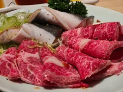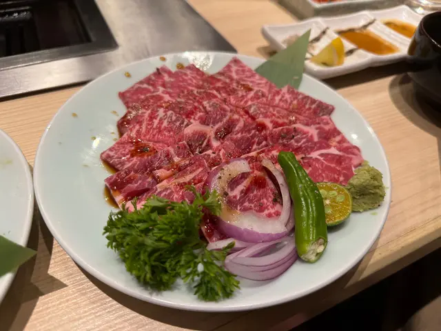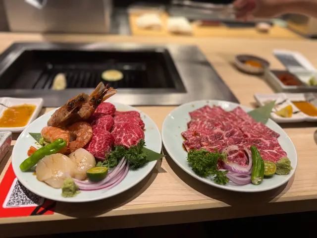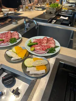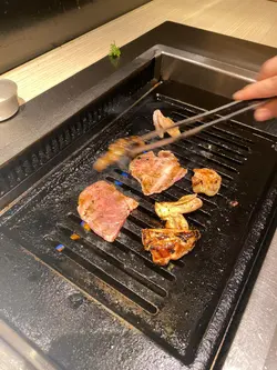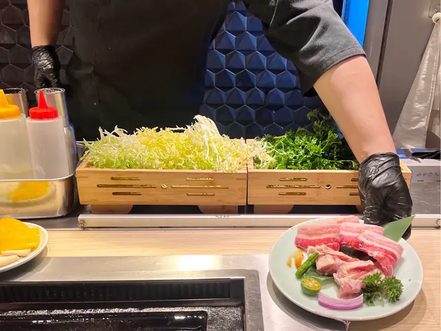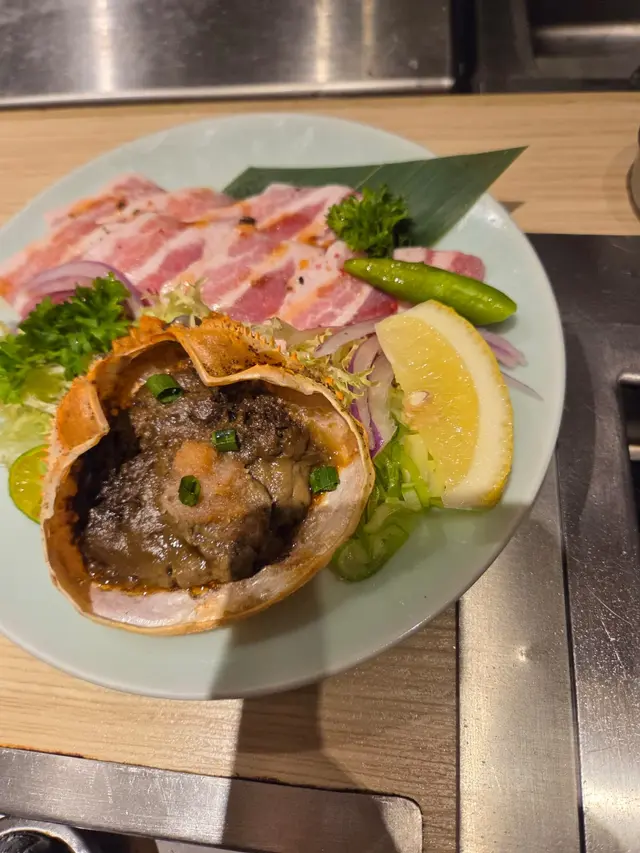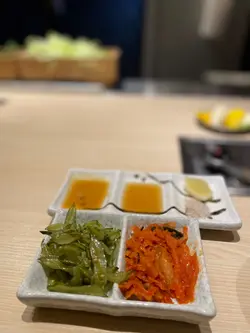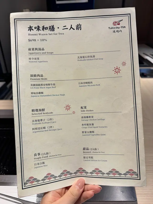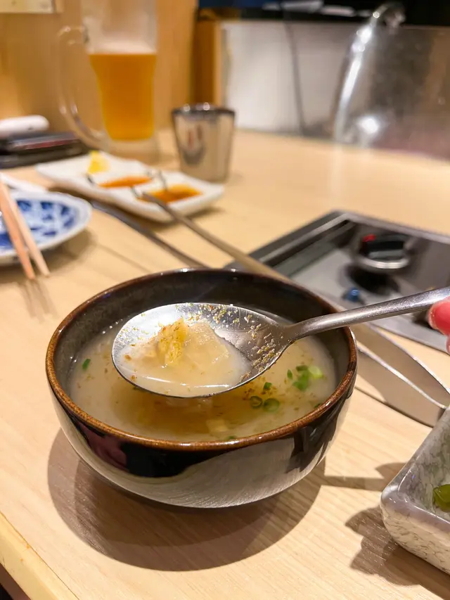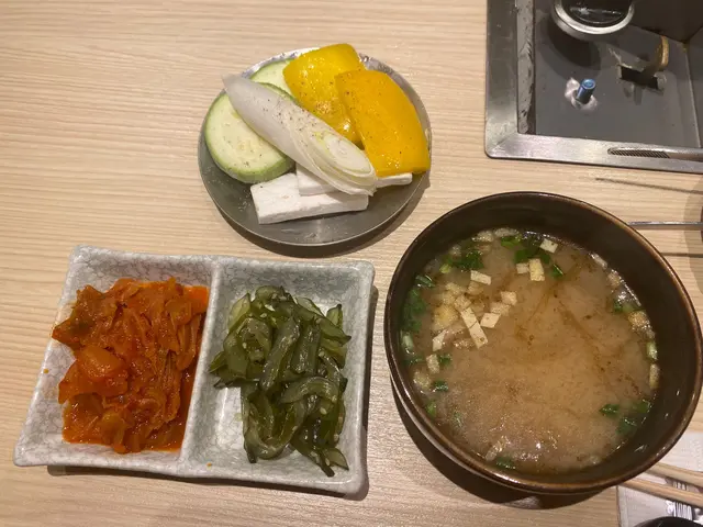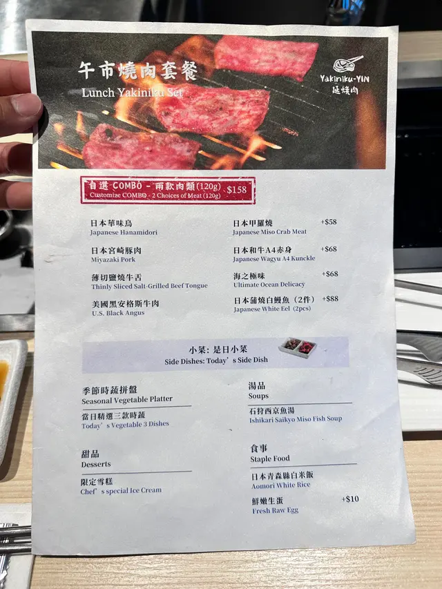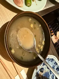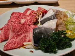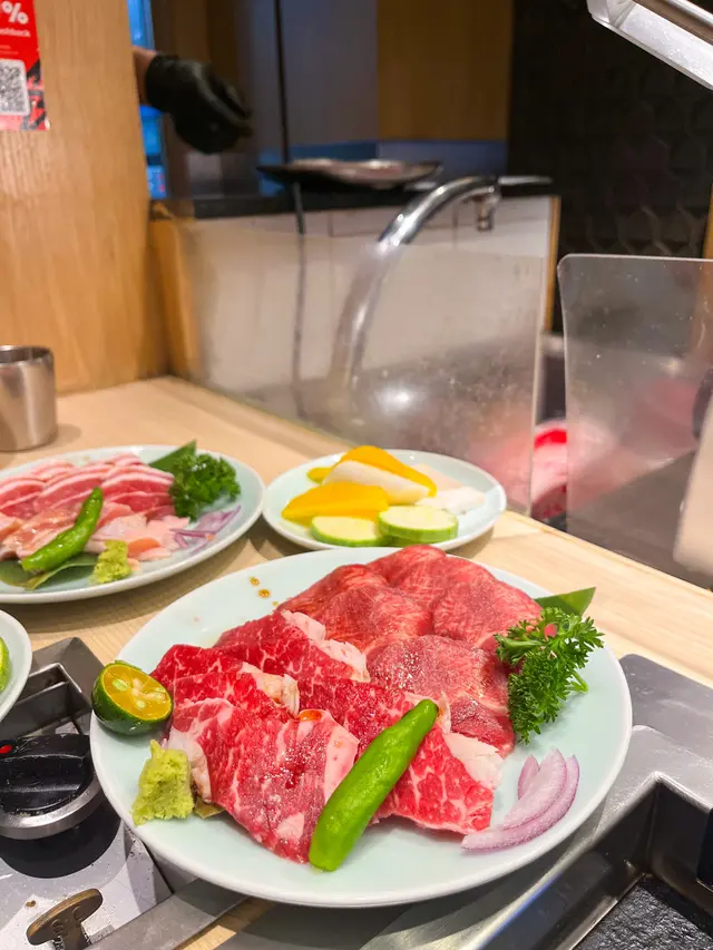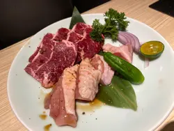聽朋友介紹呢間位於上環的燒肉店,晚市的燒肉套餐先係每人$238,好似好抵食,今晚就黎左呢到食飯,餐廳空間唔算大,有BAR枱同四人座位,裝修偏向日系風格,仲會播住日本的歌曲,令我覺得自己去左日本食燒肉咁。是日小菜:海帶牙&泡菜可以係食燒肉前清新一下味蕾。石狩西京魚湯湯有粒粒的魚肉,湯底濃郁得黎又唔會膩,又夠足料。自選Combo-兩款肉類(150G)因為坐BAR枱,睇住個職員接左ORDER先會即刻切肉,確保新鮮,睇住個職員對擺盤都好有要求,擺得花心思。日本華味鳥雞肉幾爽口,雞皮燒成脆卜卜,好邪惡。日本宮崎豚肉肥瘦適中,咬入口油脂感好豐富,一啲豬臊味都唔會有。薄切鹽燒牛舌牛舌份量都算幾多,牛舌入口爽彈。美國黑安格斯牛肉佢啲紋路好靚,入口牛味算濃,唔會過油,再加啲檸檬嚟食汁,好夾。季節時蔬拼盤有翠肉瓜,黃椒,大蔥,雞脾菇。日本青森縣白米飯食燒肉係一定要配白飯的,飯粒粒分明,好滿足好飽。開心果雪糕呢個都幾大驚喜,入面仲有粒粒的開心果,又唔會死甜,真係幾真材實料,為呢餐燒肉晚飯劃上個完美句號!…查看更多
