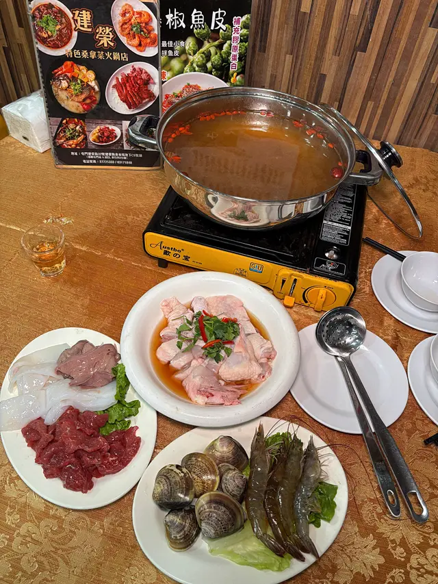 🎀屯門。轉季必試暖心養生醉雞火鍋🐔🎀🪄店名* #建榮特色桑拿菜火鍋店🔮地址* 香港屯門建榮街32號建榮熟食市場地下C6號舖 🔮🗾分店地區🗾 沒有分店➖➖➖➖➖➖➖➖➖➖➖➖➖想睇更多同區推介👉地區搜尋🔍🗾#pickyme_屯門剩系食呢一類👉食物類型搜尋🔍🍜#pickyme_港式➖➖➖➖➖➖➖➖➖➖➖➖➖🎵餐廳環境🎵建榮特色桑拿菜火鍋店位於屯門建榮街的熟食市場內,是一家充滿傳統港式風味的大排檔。餐廳空間寬敞,環境乾淨企理,雖然氛圍熱鬧且人聲鼎沸,但正因如此更能讓人感受傳統大排檔的獨特風味。營業時間至凌晨兩點,晚上常有許多人前來聚會,是夜貓族的好去處。這間隱世菜館雖然環境樸實,但食材質素絕對值得專程到訪,特別是海鮮愛好者更不能錯過!🍽️食物質素🍽️餐廳提供多種類型的食物,主打充滿鑊氣的港式小菜,同時也提供火鍋。菜式選擇豐富,份量充足,招牌菜包括冰淋醬烤骨、芝士蝦煎米粉和招牌咕嚕肉。人均消費約$101-200,性價比不錯。食材新鮮,如咕嚕肉即場火燒新鮮菠蘿,火候十足,是體驗傳統風味的理想選擇。👀評分💖💖💖💖💖🪄乾隆醉雞鍋(半隻)$238近日天氣轉涼,店員極力推薦這個人氣暖身鍋物,果然名不虛傳!鍋底用料十足,紅棗、杞子、當歸在湯中翻滾,散發濃郁藥材香氣。待湯滾起後先嚐一口,湯頭清甜順喉,瞬間暖透心窩。醉雞件份量十足,肉質嫩滑得驚人,雞皮彈牙,雞味濃郁得來又不會被酒味蓋過,酒香恰到好處。吃完不久就感覺全身暖笠笠,絕對是秋冬必食之選!🪄鮮魷片 $58🪄大沙蜆 $48🪄鮮牛肉 $78🪄新鮮豬潤 $47🪄鮮蝦 $68🪄汽水 $12@1 *2特別要推介他們的海鮮,水準超乎預期!鮮魷片口感爽脆彈牙;大沙蜆每隻都肥美飽滿,完全無沙,鮮味十足;最驚喜是鮮蝦上桌時還在跳動,足見其生猛程度,灼熟後蝦殼容易剝離,絕無殼肉黏著的情況,肉質結實鮮甜。鮮牛肉屬典型港式風味,肉質正常;豬潤則要掌握火候,輕輕涮煮至剛熟最能保持爽嫩口感,煮過久會影響風味。(5個💖為最高)✴️✴️✴️✴️✴️✴️✴️✴️✴️✴️✴️✴️✴️⚜️整體評級⚜️🎈味道評分*😋😋😋😋😋🎈環境質素*🎇🎇🎇🎇🎇🎈抵食程度*💰💰💰💰💰🎈服務態度*💌💌💌💌💌…查看更多