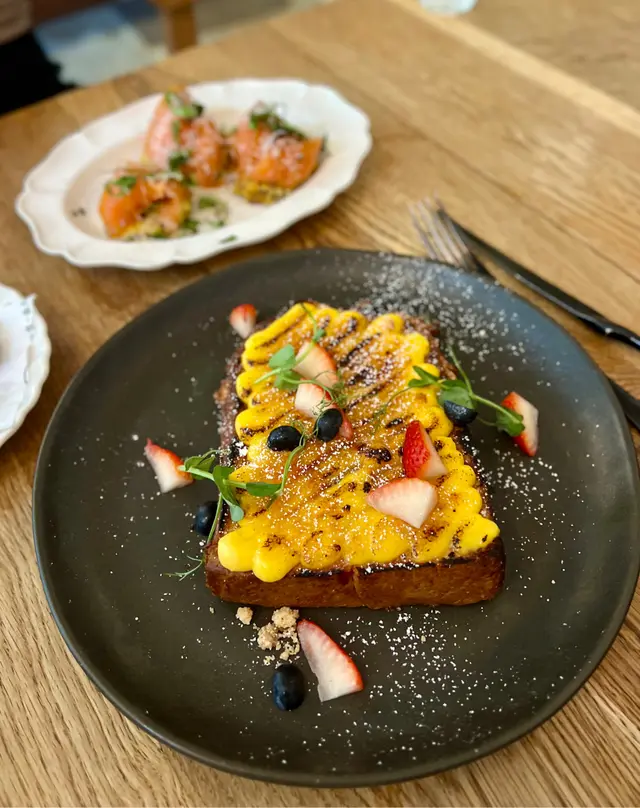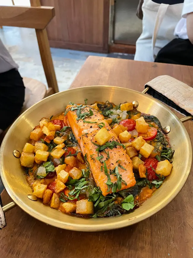discover hidden café @cafe_twenty_one_from_eight in a serene corner of Sai Wan, Hong Kong ☕️ cozy ambiance with wood accents, floor-to-ceiling windows, and soft natural lighting 🌿 all furniture and décor are from their own brand adding textures and warmth 🪵香港西環靜角隱世咖啡 @cafe_twenty_one_from_eight ☕️ 落地玻璃透進自然光 配上柔和燈光 營造舒適悠閒氛圍 🌿 全店桌椅及擺設都是自家木藝品牌 散發溫暖質感 🪵 🍅 北非蕃茄焗蛋 shakshuka HKD$88自家製蕃茄醬底 酸香濃郁 香料氣息慢焗蛋黃 融入醬汁 搭配麵包 增添風味🍳 自選早餐盤wish granted brekkie HKD$158份量十足 烤蔬菜 太陽蛋 乳酪杯 炸薯條烤雞扒 肉嫩多汁 法式西多士 鬆軟蛋香🥗 茴香香梨沙律配檸檬蜂蜜油醋醬 HKD$90fennel and pear salad with honey lemon vinaigrette爽脆梨片 鋪滿芝士 清新茴香 酸甜解膩🍞 蘋果芝士焦糖西多士 HKD$138apple cheese caramel french toast蛋香吐司 糖漬蘋果 拉絲芝士 鹹甜脆軟🍰 煙燻布里巴斯克芝士蛋糕 HKD$58smoked brie burnt cheesecake奶香濃郁 略帶鹹意 煙燻香氣 細緻柔滑🍵 華盛頓與蘋果樹little george’s apple tree抹茶奶蓋 配蘋果汁 梳打清新 帶有茶韻☕️ 卡布奇諾 轉燕麥奶 (large) HKD$45 + $5cappuccino with oat milk醇厚咖啡 配燕麥奶 泡沫細膩 輕盈順滑📍西環石塘咀山道93號地舖🇭🇰*…查看更多