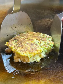 🌟 鮮嫩雞肉丸,配埋醬汁同蔥花,仲有滑溜溜嘅蛋黃喺上面,拌勻之後香味即刻撲鼻!雞肉丸外層煎得微焦,內裡保持濕潤,口感一流💯2️⃣ Oyster Okonomiyaki (蠔御好燒)