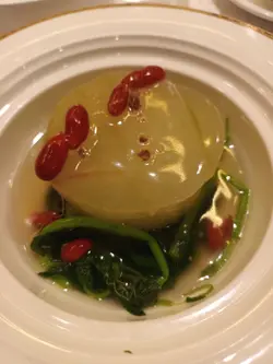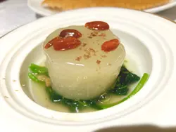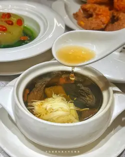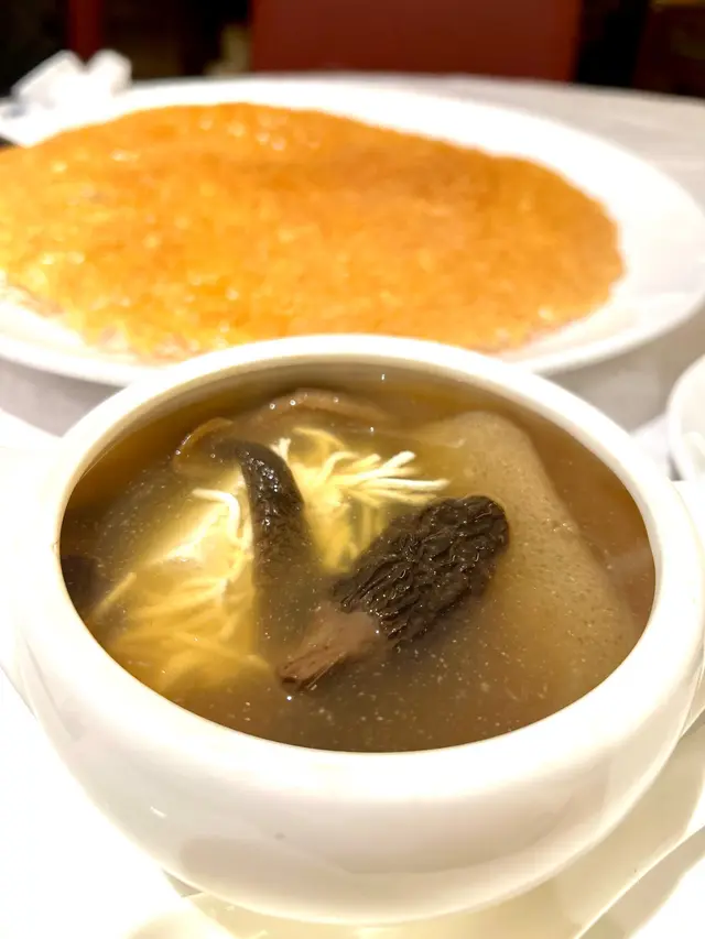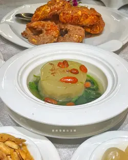 張公館的菜品呈現出精緻的工藝與豐富的風味。羊肚菌姬松茸水中花燉湯火候掌握得當,湯底清澈透亮,散發著淡雅的菌香。羊肚菌與姬松茸的鮮美相得益彰,豆腐作為精雕的水中花增添視覺美感和清新口感。鮑汁脆皮百花海參伴蝦籽柚皮時蔬,鮑汁的濃郁滋味,為鮮嫩的海參帶來更深層次。搭配的蝦籽則帶來海洋鮮味,而柚皮的清香則增添一絲清爽感。碧綠雲腿白玉環令人驚艷,雲腿的鹹香與冬瓜化身的清甜白玉環相互交融,口感分明。上湯牛油大蝦球煎脆米粉,其芡汁的牛油香氣與鮮甜上湯完美融合,蝦球外脆內嫩,澆上這個別具特色的脆米粉,讓人一口接一口。生磨蛋自杏仁茶口感滑順,香氣濃郁。杏仁的香味與蛋的細膩感完美結合,讓人感到溫暖與舒適。而我們亦很欣賞這個桂花五色糕,五色分別為芒果、火龍果、椰汁等等,口感柔軟,色彩鮮豔,極具層次。享用晚餐時,見到9月30日前,星期一至五午市點心7折,7折點心伴海景,非常抵食!而10月8至10日,仲有招牌菜紅燒潮州翅優惠快閃三天,只係賣$338,一定會再過來試!張公館 (銅鑼灣)地址:銅鑼灣登龍街18號V Point 29樓…查看更多