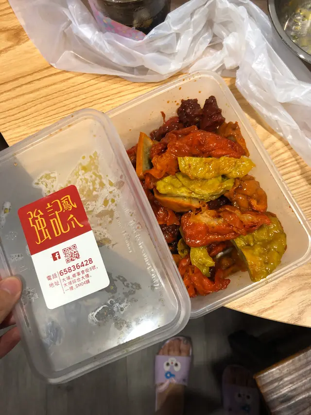 大埔外賣必食 yuyu000888等級42023-10-112K 瀏覽 關注 每次入大埔街市都必定會買一盒,呢間店的姐姐好好,自備食物盒俾佢地完全無問題。今次買咗無骨鳳爪,雞腎及生腸。無骨鳳爪:家人最愛,白雲口味,口感夠淋易咬開,我哋點了小辣味道剛剛好,唔會太酸。雞腎:雞腎最怕食落好靭、好難咬開,呢間做做得幾好,每塊都易咬開。食落好香麻油味,又唔會太咸,撈左芝麻食落十分香口。生腸,一睇就知爽口,食落乾淨無腥羶味,咸味適中,同雞腎一樣滿滿麻油香味。$80有晒3款,加餸一流!再次想讚一讚呢間店歡迎裸買,自己帶盒嚟買,走塑減膠愛地球就係咁簡單~…查看更多以上食評乃用戶個人意見 , 並不代表OpenRice之觀點。1分享大埔外賣必食 強記鳳爪 https://s.openrice.com/QrbT0LKHD00檢舉 張貼 評分5味道4環境5服務4衛生4抵食用餐途徑堂食