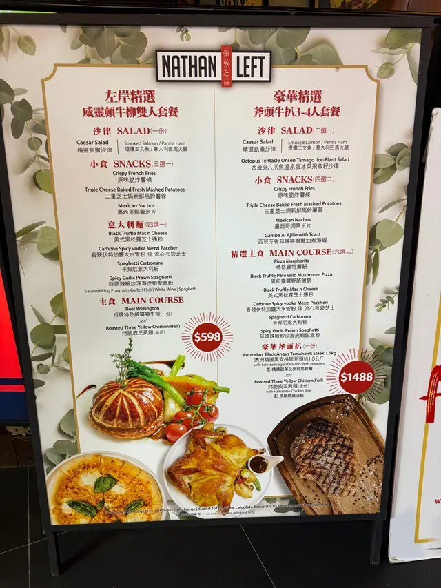彌敦左岸 (尖沙咀) 網上訂座享低至88折優惠兼賺Rice Dollars 網址: https://s.openrice.com/QrbS0xnC700 地址: 香港尖沙咀赫德道5-9號德裕中心地舖及1樓 電話: +852 23691333