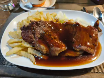 ,塊扒超硬,超鹹,又嚼唔爛咁,塊扒浸左好耐儉水好怪的口感。體驗一次就夠了店員服務算好,環境一般乾淨。