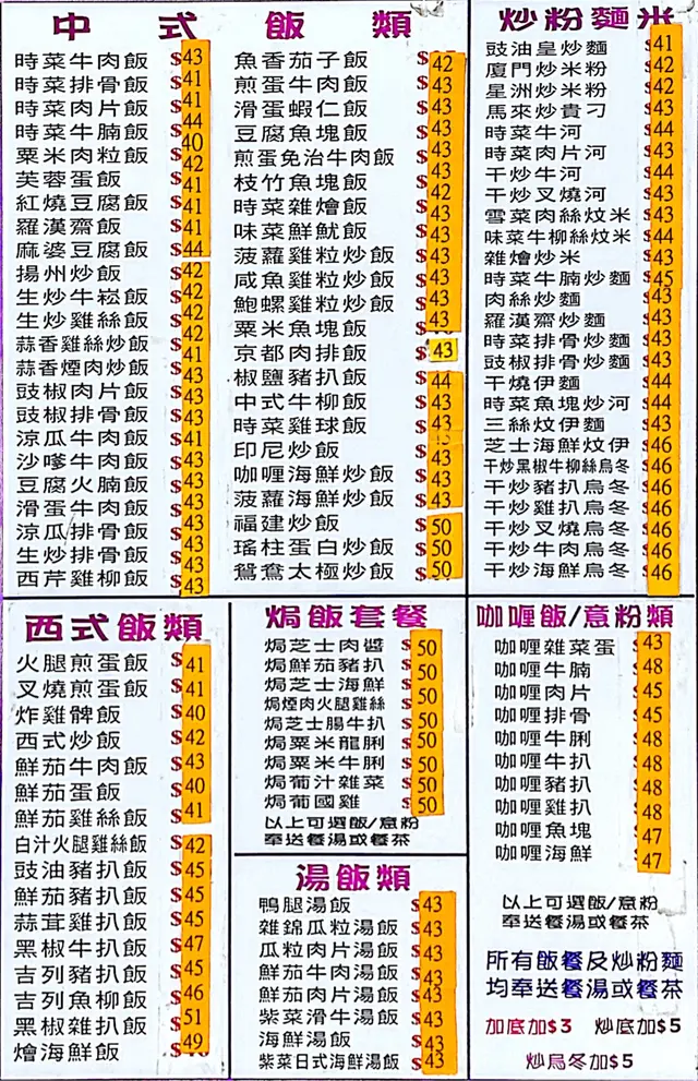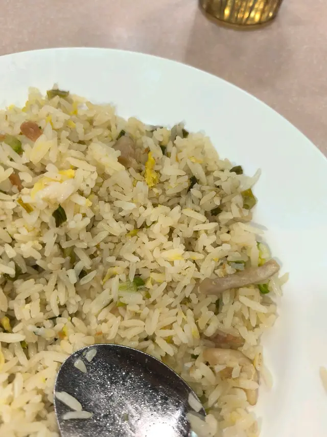 叫咗個咸魚雞粒炒飯滿心期待,作為食家的我發現炒飯係翻焗的!首先個膠碟整個係暖?再細心觀察,炒飯內既葱粒有兩種色澤,唔明反正都係炒好咗好幾個鐘,後期再加新鮮葱搞雲後再焗熱會好食啲?一食個飯就出事,勁咸,咸魚粒一粒都冇,果種咸係來自鹽既咸味。中湯可接受。最後係服務員,三個都係阿姐,個個講嘢用中氣勁大聲,個場方型又細,邊食邊聽三個女人講埋啲廢話,坐又唔好坐,椅背頂椅背。