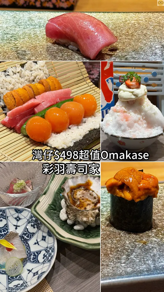 前排同班姐妹去咗係灣仔嘅彩羽壽司家食Omakase😍😍我哋今日食咗午市嘅”細”🙆🏻♀️🙆🏻♀️刺身有真鯛、鱈魚白子、大分縣野真蠔,太刀面層有火炙過 香口惹味, 煙燻春魚,蟹肉春卷,鮟鱇魚乾泡芙,全部都好新鮮😍而壽司🍣有貝柱、碟魚邊、赤身、鯖魚,拖羅🥰仲試咗七色龍珠太卷,必叫啊🙆🏻♀️將海膽、拖羅、醬油漬蛋、青瓜包卷起,賣相一流,我哋係咁影相,真係睇得又食得啊🤣仲𩶘魚湯玉子燒,最後配埋刨冰🍧食得好滿足啊❣️食後感:環境舒適,性價比高,食材新鮮,同朋友聚會都唔錯…查看更多
