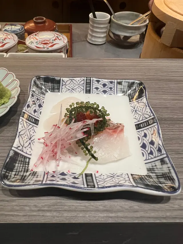 今次相約朋友去位於灣仔的「彩羽壽司」品嚐高性價比的Omakase 廚師發辦😍🎏,。「彩羽壽司」位於隱蔽的街道內,門口設計作風低調,很有神秘感🎏。店內設計裝潢感覺舒適,只設有吧枱座位🪑,可以近距離欣賞廚師👨🍳精湛的手藝,座位與座位之間不會太接近,座位不多,約有14個位,所以一定要訂枱🤭板前師傅很專業,一邊介紹菜式和食法之餘,也有跟客人們有說有笑,令大家都輕鬆愉快👍🏻晚市《雅》套餐 $680/人套餐包括前菜、刺身4款、串燒5串或和牛壽喜燒、壽司6貫🍣、江戶前玉子燒🥚、味噌湯🥣及甜品🍧🍨🤩相當豐富。🔹️前菜前菜是甜嫰的白粟米🌽、清香的無花果配搭彈牙的汁煮八爪魚🐙,清爽開胃。🔹️刺身4款1️⃣真鯛真鯛肉質細緻鮮甜,油脂適中,入口清爽,配搭海葡萄及酸汁啫喱,味道帶酸又鮮甜,很開胃😍2️⃣白子因為我唔食得蠔,所以師傅將日本生蠔轉為白子🤭白子自帶甜甜的味道,口感綿密柔滑,就像是鮮嫩的豆腐,配搭加入了醋汁的水雲同食,入口即融,口感清爽❗️3️⃣秋刀魚橫切面見到魚肉和配料構成色彩繽紛🌈秋刀魚油脂豐厚,肉質細緻,搭配醃漬及蔥花製成卷狀,口感豐富❣️4️⃣鏗魚師傅將魚肉連魚皮輕微炙燒🔥,從而將魚油迫出,肉質細緻且油脂豐富,入口柔滑鮮甜😉。 🔹️和食和牛壽喜燒跟朋友一人選了一款和食😆壽喜燒選用油花分布均勻的和牛🐮,肉質細嫩,搭配甘甜湯🥣汁和蔬菜🥬同煮,和牛和蔬菜都吸收湯汁精華,鹹甜平衡,口感豐富,蘸一蘸生雞蛋🥚一同食,口感更滑順。或 串燒5串5款串燒有爽口彈牙的鮮蝦🦐、香濃多汁的牛肉🐮、嫰滑入味的雞肉🐔、清甜的冬菇🍄🟫及青椒仔,再將木魚花灑在串燒上面,好豐富。🔹️彩羽太卷我們2人都額外點了彩羽太卷,卷物非常好足料🥰以自家醃製醬油漬蛋黃🥚,配上鮮甜的海膽、濃厚鮮味的大拖羅及中拖羅🐟,還有青瓜🥒一起吃,口感及味道相當豐富,幸福感滿滿❣️🔹️壽司6貫1️⃣鰤魚就是體型較大的油甘魚,冬季時會較肥美,口感滑身又帶爽口,油脂散發甘腴,細膩鮮甜🤤 2️⃣甘舌鯛肉質細緻綿密,魚肉口感軟熟,味道甘甜帶微微油香🤩3️⃣鮟鱇魚肝泡芙鮟鱇魚肝慢煮後再造成慕絲的效果😋,將鮟鱇魚肝釀入泡芙,外皮酥脆,內裡口感綿密軟滑,驚喜感滿分‼️👍🏻4️⃣貝柱貝柱口感紮實、味道鮮甜。 5️⃣中拖羅色澤鮮嫩的拖羅佈滿魚油花紋🤭,富天然魚油脂的甘香,入口即溶,入口滿滿甘腴鮮甜,真鮮甜無比‼️6️⃣昆布海膽海膽經過醃漬來濃縮海膽鮮味🤩,海膽色澤呈淺橙黃色而飽滿挺身,醃漬後的昆布漬海膽口感更豐富,味道更濃厚甘甜口,感幼滑又creamy‼️🔹️江戶前玉子燒玉子燒口感柔滑甜香🥚,層次分明,蛋香濃郁。🔹️味噌湯食了多款刺身及壽司後,飲碗味噌湯🥣,既可以暖胃又解膩。🔹️甜品日式雪花刨冰我們也額外+$78 將雪糕升級至刨冰🍧,糖漿選了桃味🍑冰刨得非常細膩,口感綿密如雪花般滑順,師傅一邊刨,一邊加入桃味糖漿,非常滿足😍再配搭蜜瓜🍈一起食,非常解膩👍🏻雲尼拿雪糕原本的甜品是雲尼拿雪糕🍨,口感細滿綿密,好清爽😊⭐️整體食物質素高又新鮮,也看得出廚師在設計菜式和安排上的心思。…查看更多