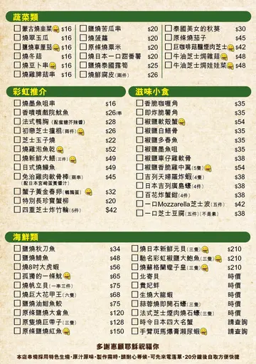 彩虹串燒專門店 (大埔) 網上訂座即賺Rice Dollars 網址: https://s.openrice.com/QrbS0x2qD00 地址: 香港大埔運頭街20號地下D號舖 電話: +852 63600900