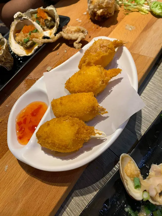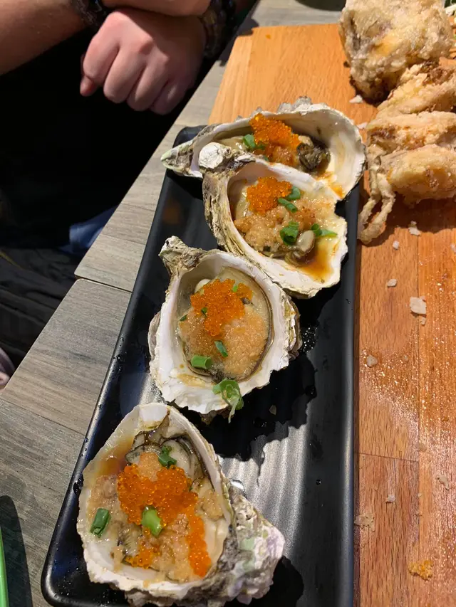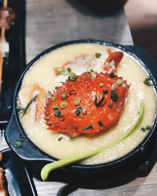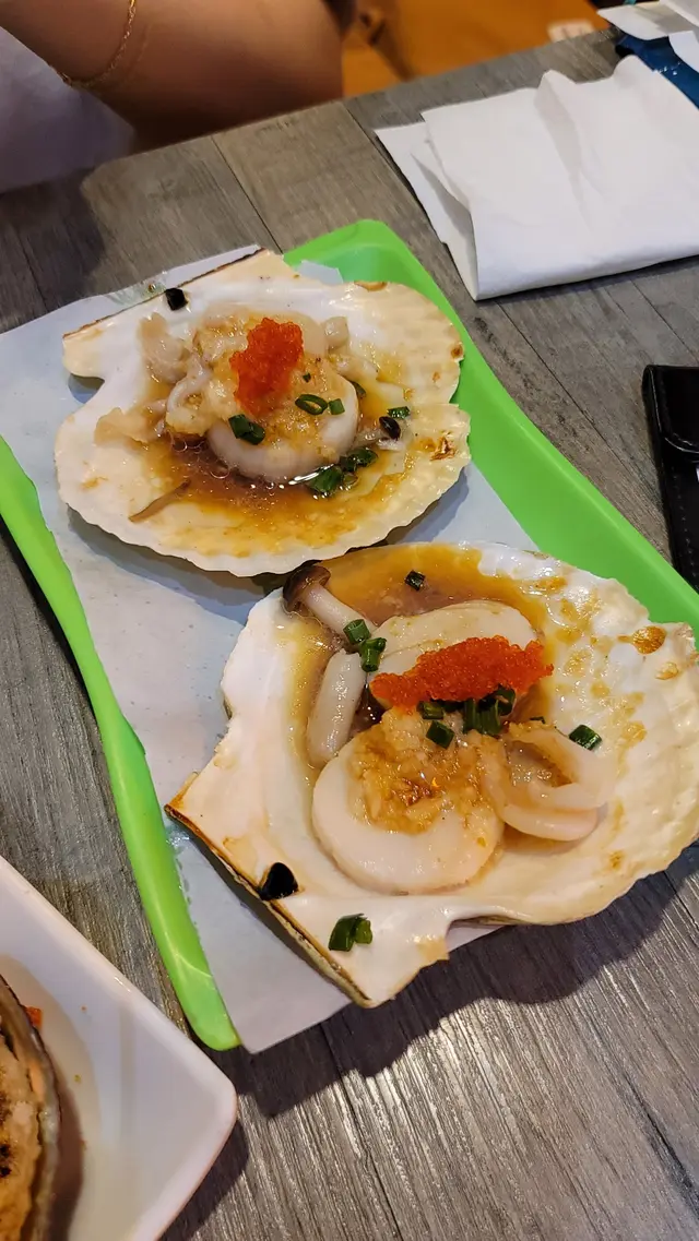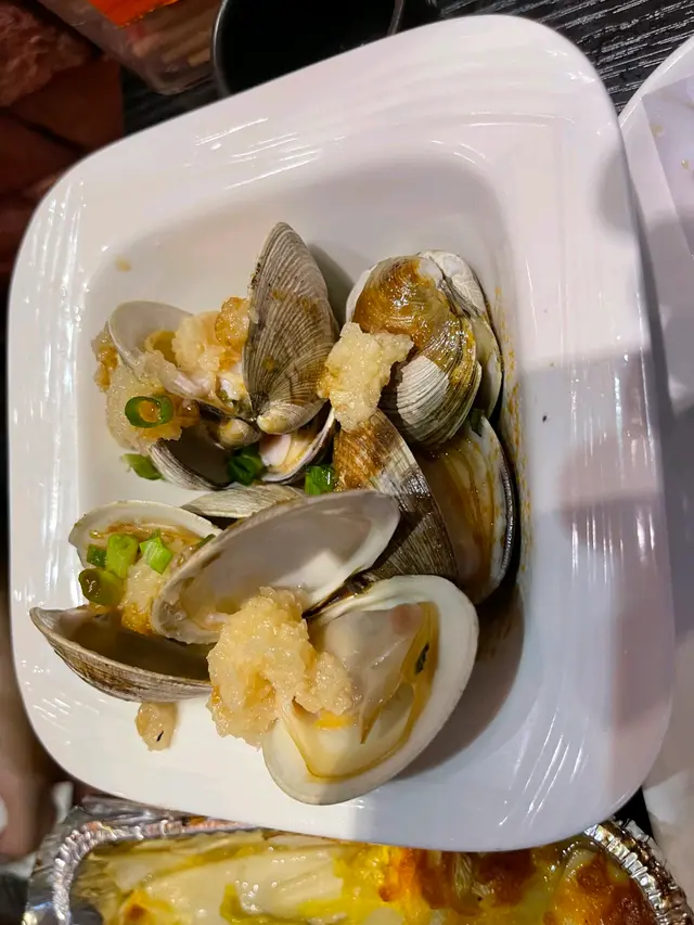 來多10隻我都食得晒!椒鹽鮑魚3隻送6隻燒大花甲$180 相比下椒鹽鮑魚就遜色多了,包左粉漿再炸,一來粉漿太鹹,二來遮蓋咗鮑魚本身味道。燒蠔3隻送6隻燒大花甲$150 好重蒜蓉,主要都係食蒜蓉。膏蟹海鮮粥$138/1煲 (1.5人份量)大大隻蟹, 將蟹膏拌落海鮮粥到一齊食,一流原條燒茄子$42十分好味!我哋一共嗌咗兩次,第一次我哋嫌佢唔夠多蒜蓉,第二次問姐姐可唔可以多蒜,結果第二次極之好食。燒金菇肥牛卷 $42/串圖中係2串,每一串有三大舊,食落好多肉汁