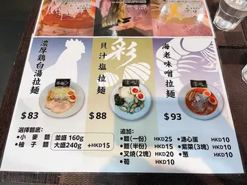 早兩日好想食拉麵!! 有位朋友推介彩AYA呢間所以就去咗試!!我叫左黑蒜油沾麵,揀左要黑胡椒麵。入面有兩塊薄嘅豚叉燒片,味道可以,正常發揮。溏心蛋做得好好,唔會太熟蛋黃流出嚟,好正。黑蒜湯都好濃郁,但作為沾麵嘅湯,我期望湯可以再濃稠一點,就可以更掛湯了!至於黑胡椒麵,我覺得好好味喎!食得出有胡椒味。老公就叫左海老沾麵,揀左芝麻麵。一樣都係有兩塊豚叉燒同一粒溏心蛋。海老湯蝦味好出,感覺真材實料!芝麻麵相對普通。一樣如果湯更濃稠,更佳。總結,都幾好食,價錢都合理。店員妹妹有禮服務佳。有機會會再嚟試吓其他湯底。…查看更多