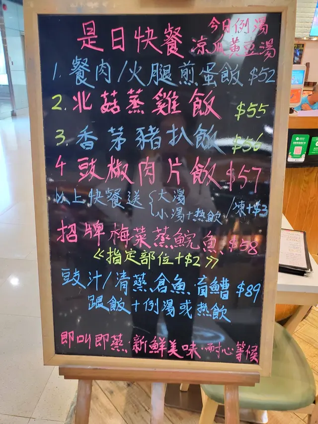 行過幾次,每次都見到好多人幫襯,好似好受歡迎,但每次望完餐牌,又唔知揀乜好,唔多提得起勁入去食,所以每次都冇入到去。這次思考很久,終於決定試一試(因為真係諗唔到食乜)。睇餐牌,主要都係蒸餸蒸飯,感覺好家常。我揀咗咸魚肉餅飯。個飯有跟湯,我估係菜乾豬骨湯,味道偏淡口,但有種屋企飲湯嘅感覺。而個飯份量唔算大,勉強夠飽。有兩條菜,咸魚細件,肉餅也有點薄。至於味道,唔可以話唔好食,不過調味比較清淡,似住家飯,應該適合追求健康人仕選擇。