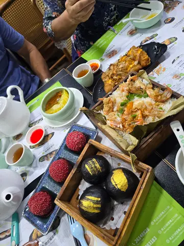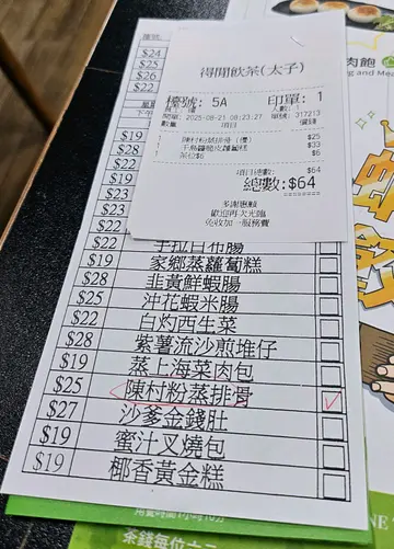 尋日嚟過見排晒隊,今朝一早再嚟「挑戰」⋯⋯早嚟唔使排,真係「得閒飲茶」⋯⋯二條友已經好勞力,特登叫多幾款試真啲~沙爹金錢肚(優)得獎蝦餃之王糯米雞龍蝦湯鮮竹卷春風得意腸千島醬脆皮蘿蔔糕3.6牛乳太陽蛋瑪卡燉竹絲雞先嚟春風得意腸~咬落去口感層次好豐富,腸粉皮有水準~好食。招牌蝦餃~同樣個皮一樣出色,入面淨蝦仁調味啱啱好,係比一般嘅酒樓好。龍蝦湯鮮竹卷,賣相同色水都唔錯,但個龍蝦湯無味,鮮竹卷亦一樣,淨係個色同「相」可以,無「內涵」。千島醬脆皮蘿蔔糕,上網睇果時同上一個鮮竹卷都有啲期望,但現實係當你食第一啖之後,你會諗~又千島醬又咁厚炸漿入面又係粉~肥死🤣,所以我第二舊係,整走晒啲炸漿至食,發覺原來入面淨粉連臘肉都無,而且仲要無味,原本啲味淨嚟自個醬同上面啲柴魚片。糯米雞,正常味道,入面唔係傳統多啲蠔油色果隻,而係你見到右下角橙橙紅紅果隻。沙爹金錢肚,都幾重沙爹味,正常發揮,唯獨啲豆卜,好似事後放落去,個色同一般放底入晒味的不同,都收貨。燉湯,好清,味唔濃,唔知係咪因為一早,所以未夠火,我個人覺得欠火喉。呢個甜品,我個人幾欣賞同鍾意,口感有啲似燉奶,真心不錯。回頭度:6/10食咗八樣嘢埋單$270,呢個價錢同今日係星期日,真係好扺 扺食。暫時覺得唔係所有點心都出色,整體合格有餘,下次試吓其他。以上純粹個人食後分享,絶無收取任何報酬或優惠,對以上言行,本人原意承擔一切責任。…查看更多