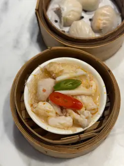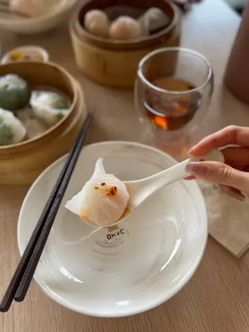 喜歡的話記得like & follow我喔♥位於將軍澳的DHYC Dimsum,這家新派點心店是我們的愛店!名字取自粵語「得閒飲茶」,是米芝蓮推介的「益新美食館」姊妹店,專注於創新點心,還提供180度的無敵海景!更難得的是,這裡是寵物友善的茶樓,可以帶著毛孩一起享受美好時光~最有驚喜是蟹肉大良炒鮮奶 ($148) !🦀🥛 奶香濃郁,滑溜的鮮奶蛋白與蟹肉完美結合,口感幼滑,還可以加點醋提鮮味!蒜蓉粉絲蒸鮮魷 ($55) 鮮魷爽口彈牙,粉絲吸滿了魷魚的鮮味和蒜香!韮王鮮蝦腸 ($55) 和 蝦餃 ($42) 都是使用新鮮蝦製作,有誠意!🦐瑤柱蛋白炒飯 ($128) 炒得粒粒分明!📍DHYC Dimsum Restaurant將軍澳唐俊街23號Monterey Place1樓2A號舖
