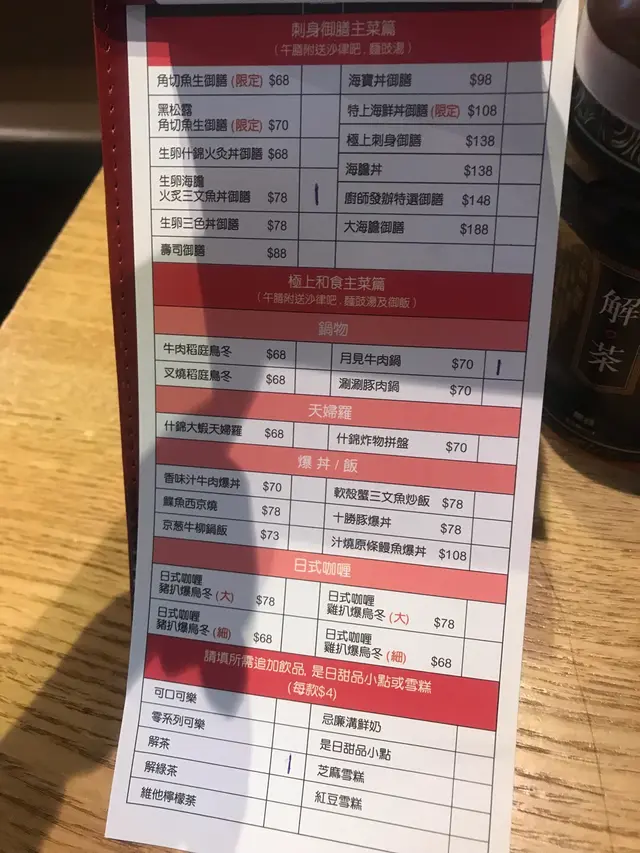 在觀塘番工的大家,應該都深深明白到搵位食飯有幾難,通常唔想等位,我地都會去OPC搵食。好耐之前食過依間,感覺裝修同其他店不同,而且有自己選擇刺身的飯,係其吸引之處。隔左一陣今日再光顧,發現午餐都變了,主餐牌加了彩色的圖片,更吸引😍依家所有午餐都包括自助沙律吧!雖然得少少前菜,有泡菜,螺肉,中華沙律等等。但都係加分的地方。😛我們叫了一個月見牛肉鍋$70, 湯底甜甜的,個人非常喜歡😍裏面有牛肉,天津菜,粉絲,豆腐和蛋,好豐富👍會配一碗白飯。另一個是生卵海膽三文魚飯,有魚子在上面。三文魚厚身,前菜有一些呑拿魚粒,甜品有櫻花味的mochi仲有一粒紅豆蓉糕點。2個餐共$152冇加一,好抵👍加左$4要支解茶,其實下次可以唔駛加😂😂有一個位我想餐廳要改善,餐廳充滿了魚腥味,好似係魚市場食野咁🤨