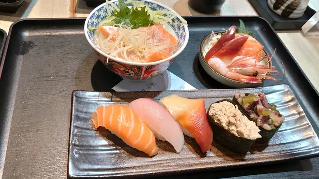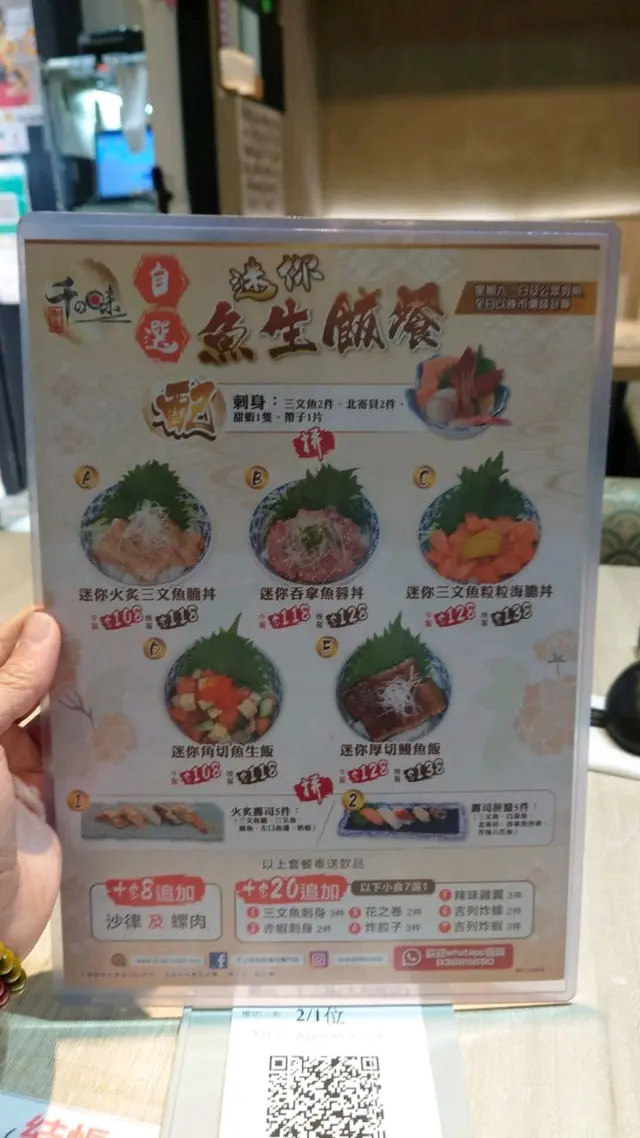 其實之前都幫襯過千之味深水埗店💛但大角咀呢間就第一次不過亦都會係最後一次了因為佢只係做到2月20日就結業睇番FB店舖指皆因疫情成日都話停晚市決定減少番堂食店數目真係好可惜呀...除咗丼飯之外,佢仲有啲set今次叫咗迷你丼飯餐入面有一個迷你丼飯、4款刺身、5件壽司仲跟埋飲品添百零蚊真係抵食迷你三文魚粒粒海膽丼 跟火炙壽司丼飯嘅三文魚俾得一啲都唔孤寒粒粒都幾大粒下,食得好滿足海膽就只係有一楷仔,不過價錢只係百零蚊都唔會期望有超多啦所有刺身都幾新鮮👍迷你三文魚腩丼 拼壽司5件三文魚腩都肥美嘅,有油脂香壽司就一般啦冇特別我會推薦火炙多啲,好味啲雖然冇咗大角咀呢間分店但仲可以繼續幫襯佢其他分店、外賣💛…查看更多