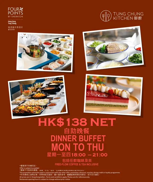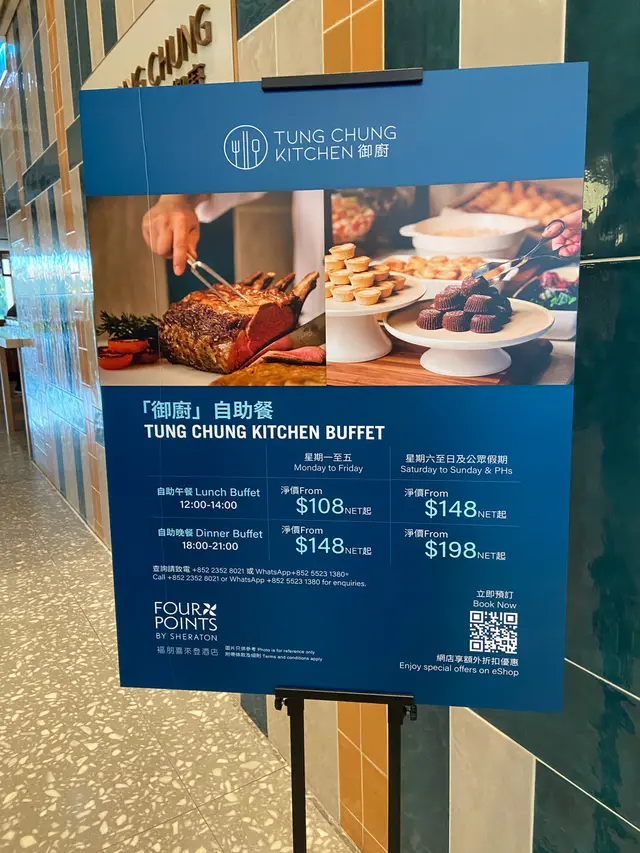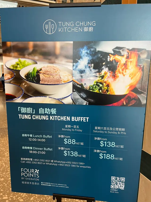 一聽到有港式小食主題嘅自助餐,就已經好有興趣,仲要價錢好實惠添,雖然要去到東涌咁遠都決定要試一試😌餐廳係喺東涌福朋喜來登酒店裏面,東涌地鐵站有穿梭巴士直達,如果行路就大概要十零分鐘,都唔算好遠。先講佢食物嘅排列有啲奇怪,餐廳本身都好闊落,但係啲食物就好迫咁排埋係一齊。結果一開始嘅時候就要排好長嘅人龍先攞到食物,呢方面做得唔係好好。另外佢嘅即煮粉麵係要響都隔得幾遠嘅一張枱上面夾咗啲蔬菜同粉麵落個碗度先,跟住再去粉麵檔叫員工煮熟同加配料,如果食多幾碗都要行好多次。另外佢嘅夾餅開始嘅時候係要自己整嘅,好彩食到中段啲職員比較得閒就可以幫客人整。除咗以上比較奇怪嘅安排,其實呢個自助午餐嘅食物質素的確唔錯,全部嘅味道都好好,例如周記燒賣、牛雜、小炒王、碗仔翅… 等等。我嘅建議係一開始如果熟食枱排長龍,就先食即煮粉麵檔嘅食物,佢啲牛雜豬皮魚蛋都可以唔配粉面淨食嘅,到熟食枱人潮開始散咗,先開始食熟食唔使浪費時間😅