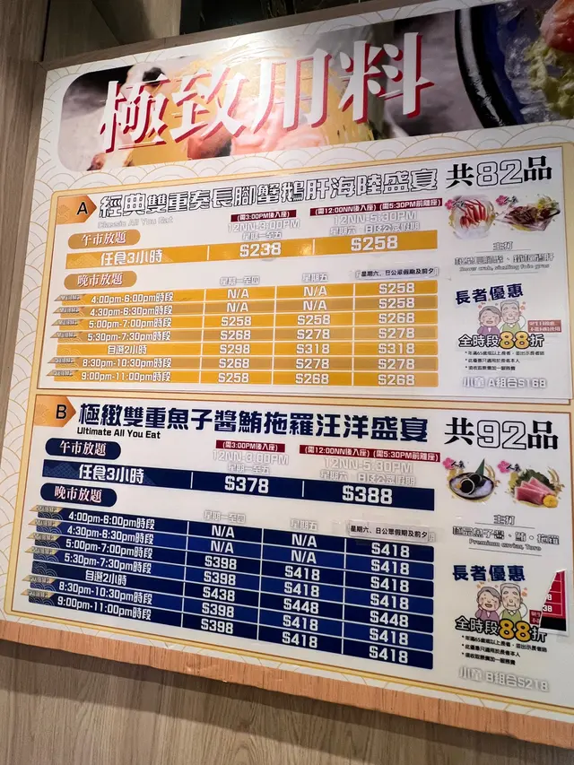 位於旺角❣︎御滿屋日本🇯🇵料理❣︎長期都人氣🔥滿滿,今日來嘆佢嘅🅱️餐極緻雙重魚子醬鮪拖羅汪洋盛宴😋有成9️⃣2️⃣品無限任食😍刺身,壽司,串燒,熱盤,甜品,一品料理等等⋯⋯雪糕🍦有Häagen-Dazs😋生啤機Asahi呢啲全部都係任飲任食架😍最正係而家季節限定,連馬來西亞🇲🇾D4榴槤都係任食🤤呢到服務態度好好👍🏻收枱速度仲好快👍🏻今晚食到抱住個肚走,個口都食到冇停過🙈💫推薦以下必食系列😋❣︎極品魚子醬❣︎味道鹹鮮🤤充滿魚油香,口感油滑,回本必叫之選👍🏻❣︎鮪·拖羅❣︎入口軟棉,魚油味濃郁甘香🤤放題來講質素相當高👍🏻❣︎阿根廷🇦🇷赤蝦🦐大大隻嘅赤蝦🤤肉質軟滑😋非常有彈性。❣︎芥辣八爪魚🐙軍艦❣︎八爪魚🐙非常鮮味有嚼勁😋👍🏻濃郁得來又唔會嗆鼻,辣度🌶️岩岩好。❣︎鐵板鵝肝鵝肝帶有微甜嘅香脆口感🤤油脂濃郁,口感細緻。❣︎豉椒炒蜆❣︎蜆肉洗得好乾淨👍🏻無沙,入口鮮甜又惹味。❣︎滿屋佛跳牆❣︎味道濃郁鮮香🤤有啖啖回甘味道,飲完唔會口乾,真材實料👍🏻❣︎馬來西亞極品冷榴槤❣︎味道香濃🤤帶有奶油香,肉質黏稠綿密,榴槤控必點系列。…查看更多