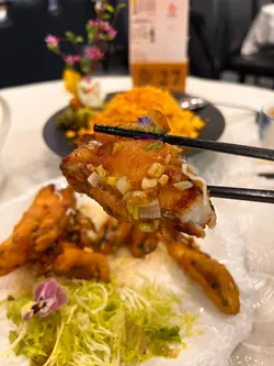 # 🐉【御瀧軒.南華會】靜中帶雅嘅高質粵菜晚飯體驗 尋晚同老婆去咗南華會地庫嘅 **御瀧軒** 食晚飯,一入去已經有驚喜。成個餐廳設計好恢宏,**吊燈、水晶、灰藍色皮椅**,氣派十足但又唔覺得壓力。枱距闊落、座位舒服、人又唔算多,**係一個可以慢慢嘆飯、輕鬆講吓偈嘅地方**。員工態度好有禮貌,講嘢細聲得嚟又留意客人需要,感覺好貼心。 ---## 🦐 惹味蝦球蟹籽粉絲煲 $168 呢個一上枱成個香氣撲鼻!粉絲吸晒啲汁,**每啖都帶少少蝦膏香同蟹籽嘅鮮味**。 蝦球唔係細細粒嗰啲,**幾大隻又彈牙爽口**,啖啖肉。調味做得好啱啱好,唔會死鹹;反而帶少少甜香,再加埋粉絲底,齋食都唔覺得淡! 老實講,呢個菜一上嚟我哋就停唔到手——明知仲有幾味未上,但都食到差唔多清晒。 ---## 🥬 芥蘭炒臘味 $188 平時炒菜好多時都唔值得特別講,不過呢碟真係要讚。 芥蘭炒得啱熟啱啱爽脆,**入口好清甜**,仲帶少少鑊氣。 臘味切得厚薄適中,**唔會過鹹、啲油香又出得嚟但唔肥膩**。 成碟平衡得好好,連我平時少食菜嘅老婆都話出奇地好味。呢個價錢雖然唔算平,但**食得出功夫同用料。** ---## 🐟 新鮮黃耳鮑耳鮑魚紅燒肉 $198(今晚 MVP 🌟) 呢個真係今晚嘅焦點! 紅燒肉色澤晶瑩,夠晒油潤。**豬腩煮得入味,肥瘦分明**,一夾入口係香滑軟綿,完全唔膩。 啲汁微甜帶鹹,配埋鮑耳(即係小鮑魚),真係完美結合。鮑魚嫩滑、吸晒肉汁精華,層次感豐富。 老實講我哋已經九成滿,都仲係不停夾,**嗰陣真係忍唔住。**---## 🍚 十二年老菜甫火腩炒飯 $198 壓軸登場嘅炒飯,果然有佢地位。飯粒乾身、粒粒分明,**炒得夠鑊氣唔油膩**。 入面啲火腩切得厚薄適中,**肉香豐富又唔肥膩,啖啖肉感十足。** 上層仲灑咗少少肉鬆點綴,食落多咗一層鹹香滋味。 不過份量真係好大,我同老婆兩個人食唔晒,**最後只能打包大半盒走**。 ---## 🍵 甜品:綠豆沙 食到尾佢哋主動送上熱綠豆沙,好暖心。 唔太甜、豆味香濃,**係一個好完美嘅結尾。**---## 💬 整體評價 | 項目 | 評語 ||------|------|| **環境** | 典雅舒服,空間感強,枱距夠闊 || **服務** | 店員有禮、反應快、不催客 || **食物水準** | 每一味都見心機,味道層次分明 || **價錢** | $788 兩個人食到飽晒,唔收加一,性價比算高 || **美中不足** | 地點比較偏,唔係會員就要入會或經朋友帶入,不過值得特登嚟試! |---## ❤️ 總結感想 > 今次喺南華會嘅 **御瀧軒** 真係有驚喜, > 餐廳環境寬敞舒適、食物水準高過一般酒店中菜廳。 > 無論係蝦球粉絲煲定紅燒肉,都做到傳統粵菜嘅精髓 —— **香、滑、濃而不膩。** > > 唯一缺點就係位置唔算方便,但**如果你重視用餐體驗、鍾意高質粵菜**,呢度一定唔會令你失望。 > 下次可能會約多幾個朋友一齊嚟,開幾支酒、慢慢嘆,應該會更完美。😋 📍 **地址**:香港加路連山道88號B層及UB層(南華會地庫) 💰 **消費**:$788/兩位(唔收加一) ⭐ **推介菜式**:紅燒肉配黃耳鮑魚煲、惹味蝦球粉絲煲…查看更多