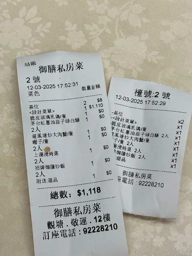 這間擁有13年歷史的私房菜位於觀塘敬運工業大廈,主打手工粵式海鮮料理,由經驗豐富的主廚掌舵,每道菜均用心烹調,堅持選用每日新鮮到貨的生猛游水海鮮—「不時不食」,明碼實價且價錢相宜。店內環境寬敞舒適,裝潢採用中式為主,牆上張貼不少影視名人曾光顧的合照。晚市時段設有二至十二人套餐,豐儉由人,更可按預算及口味設計菜單,小朋友不強制計人頭,可另加小菜或飯麵,適合家庭聚會、公司晚宴及團年春茗等。全日免開瓶費、免切餅費及免加一,自備酒水更可提供冰桶、酒杯及食用冰;代蒸壽桃包亦免費;完成指定任務可免費換汽水。兩位用設計菜單 - $1180滷水鵝肝鵝腎(慶祝生日送,不限正日)鵝肝在滷水中慢燉入味,粉潤細緻好綿密,入口有微微化開,有濃郁的鵝肝香氣;鵝腎保持煙韌有勁,兩者均充滿滷水香料的風味。脆皮玻璃乳鴿1隻採用炸子雞方式,重複以油澆淋上乳鴿身,外皮烤得薄如蟬翼,色澤金紅油亮,薄脆不膩,裡面的鴿肉卻依舊嫩滑多汁,帶著淡淡的鹹香與脂香,越嚼越香。白胡椒韭黃炒鱔柳(例牌)全新菜色,一片片鱔柳結實彈牙有嚼勁,處理得極為乾淨而不腥,大火爆炒帶有鍋氣與焦香,自家研磨白胡椒的香氣更濃鬱立體,韭黃鮮嫩多汁,鹹鮮中帶著微微辛香。芝士龍蝦(12兩)肥美飽滿的龍蝦緊密有嚼勁富彈性,鎖住豐富的肉汁好鮮甜,金黃色的芝士有微微拉絲,完美融合醇厚香濃。蒜蓉粉絲蒸大元貝(2隻)大元貝的貝肉碩大飽滿,質地緊實彈嫩,充滿著鮮甜的汁水,蒜蓉的香氣完全釋放,粉絲吸飽了蒜蓉醬汁與貝肉的鮮汁,軟糯入味且鮮香十足。士多啤梨骨排骨炸得外酥內嫩,肉質軟腍多汁而不柴,均勻裹上酸甜的士多啤梨醬汁,不僅中和排骨的油膩感,還增添了果香的清爽,甜而不膩、酸而不澀。蒜蓉炒時菜新鮮翠綠的小棠菜纖維細緻,清脆帶有甜味。蟹油銀芽炒麵麵條炒得乾爽彈牙,有蟹油獨特而濃郁的鮮香,銀芽脆嫩爽口增添層次感,鮮香十足又不油膩。抹茶奶凍質地細膩嫩滑得入口即化,清香淡雅的抹茶帶微微的甘醇,甜度剛好而不膩,奶香味與抹茶味平衡得恰到好處,撒上酸甜有嚼勁的無花果乾,清爽解膩。…查看更多